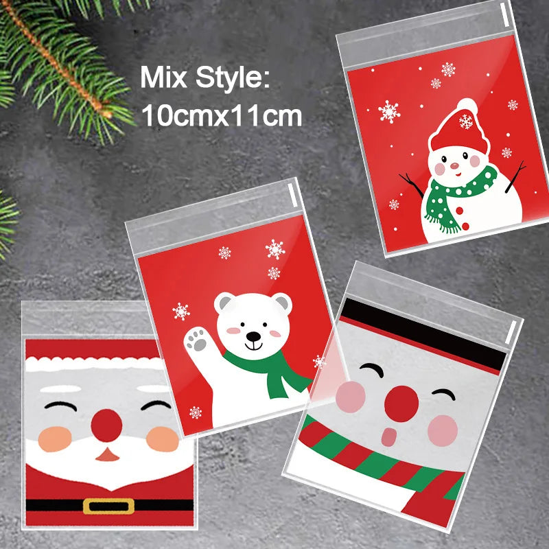 Kerst cadeauverpakking – 100 stuks zelfklevende snoep- en koekzakjes voor feestelijke traktaties