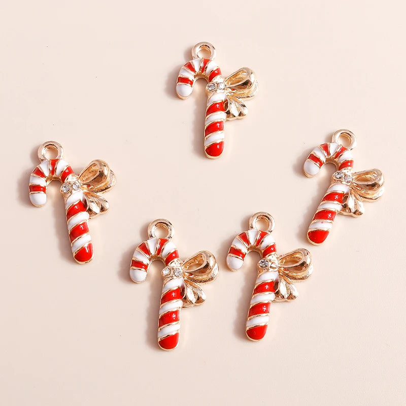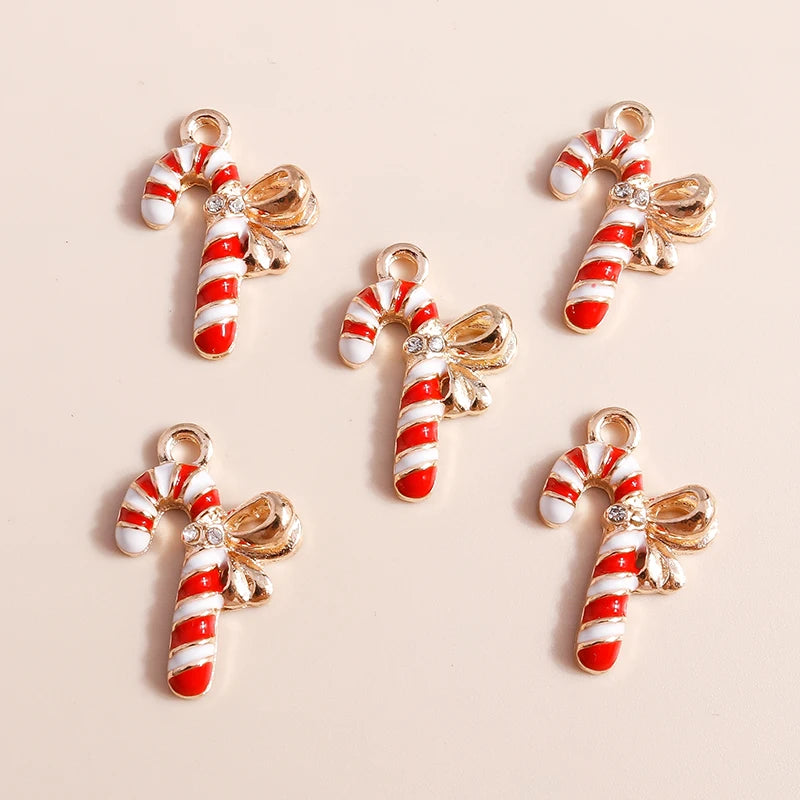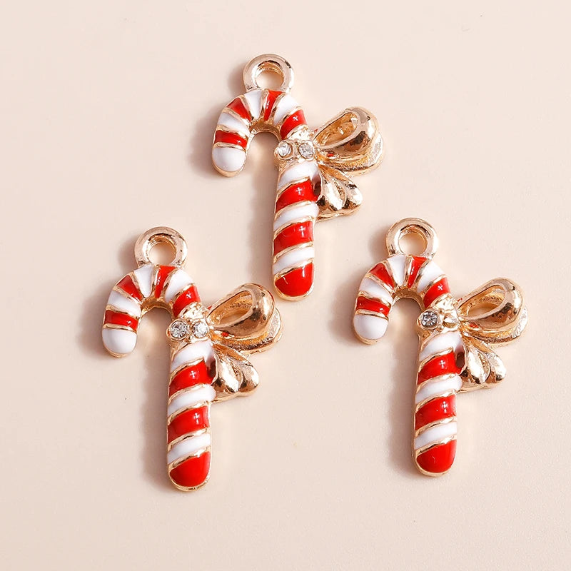 Kerst hangers emaille zuurstok bedels voor armbanden, kettingen en oorbellen - 20 stuks