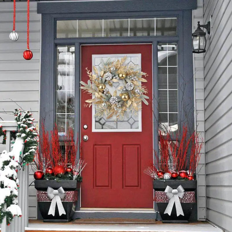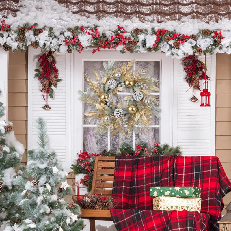Breng de feestelijke sfeer tot leven met deze elegante kerst krans met gouden takken en bladeren. De krans is met oog voor detail ontworpen en vormt een prachtige blikvanger aan je voordeur, muur of boven de open haard. Dankzij de warme gouden tinten straalt hij luxe en gezelligheid uit, perfect passend bij zowel moderne als klassieke kerstinterieurs.