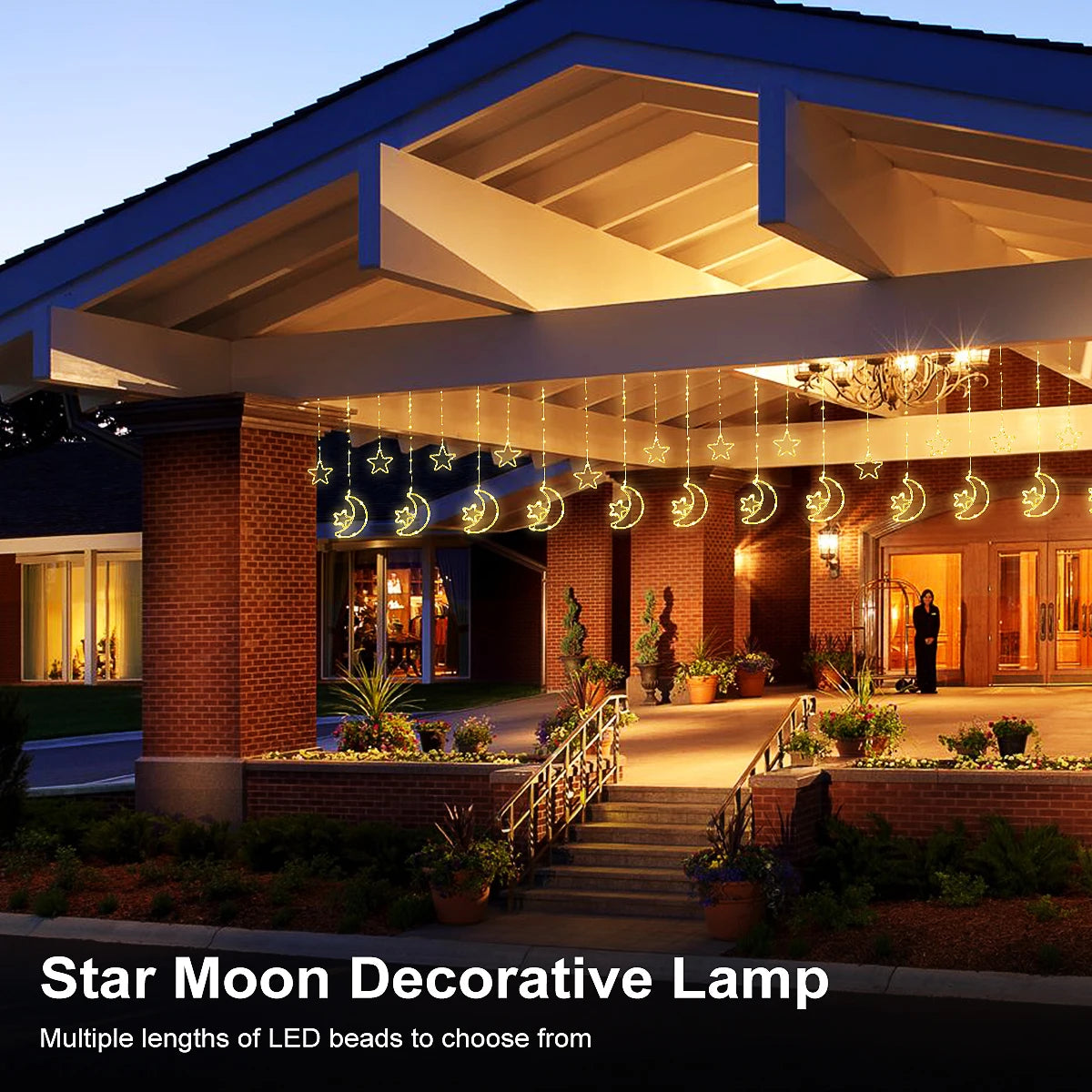 Breng een magische sfeer in je tuin, balkon of woonkamer met dit prachtige kerst lichtgordijn met maan- en stervormige lampjes. Dankzij het unieke ontwerp creëer je direct een warme, feestelijke uitstraling, perfect voor gezellige avonden en bijzondere gelegenheden.