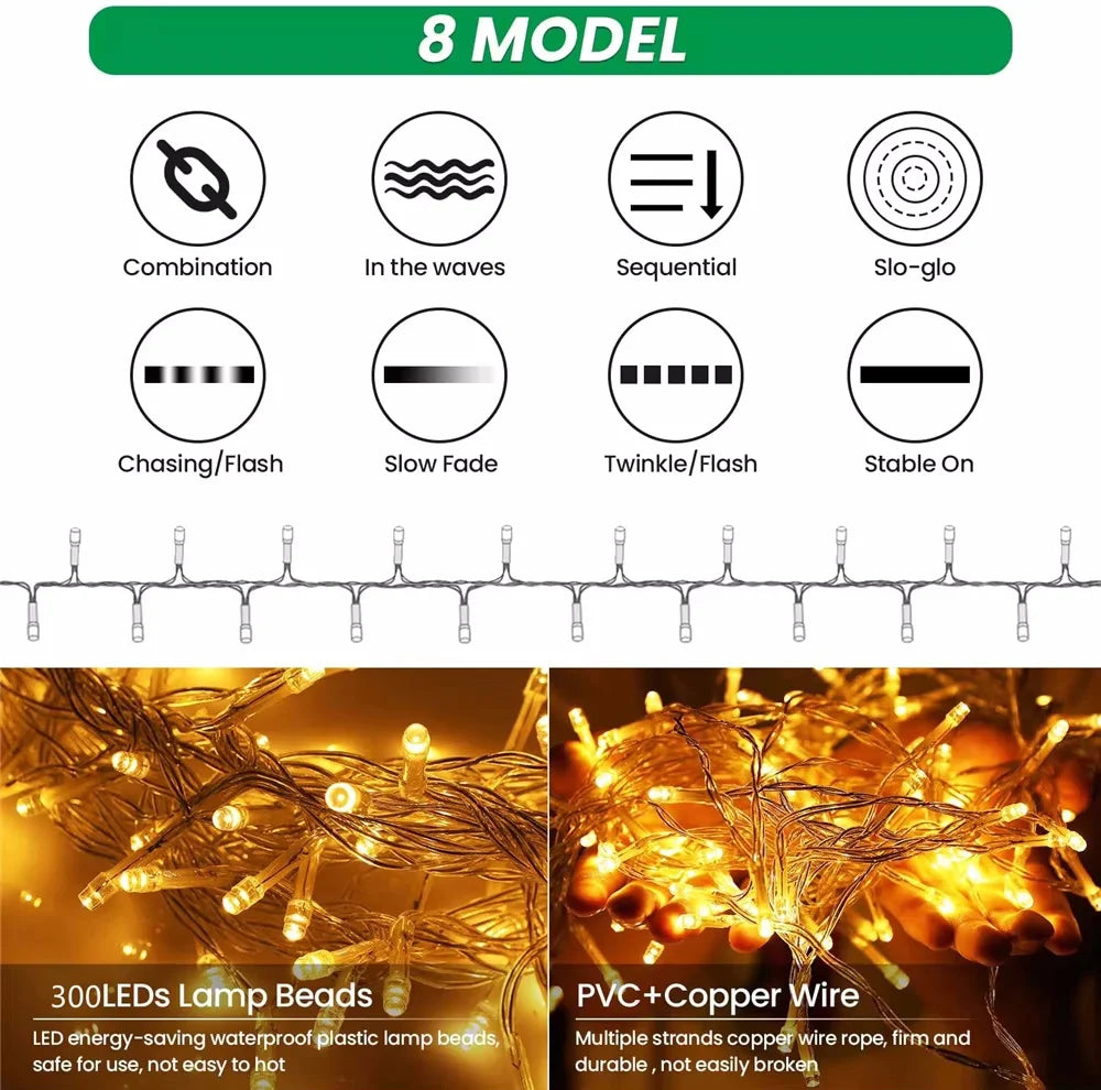 Kerst lichtgordijn met afstandsbediening en 8 verlichtingsstanden