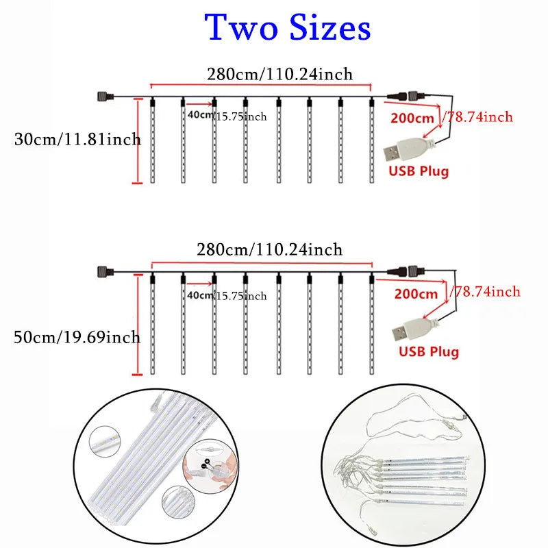 Kerst lichtgordijn USB LED vallende regenlamp sfeerverlichting
