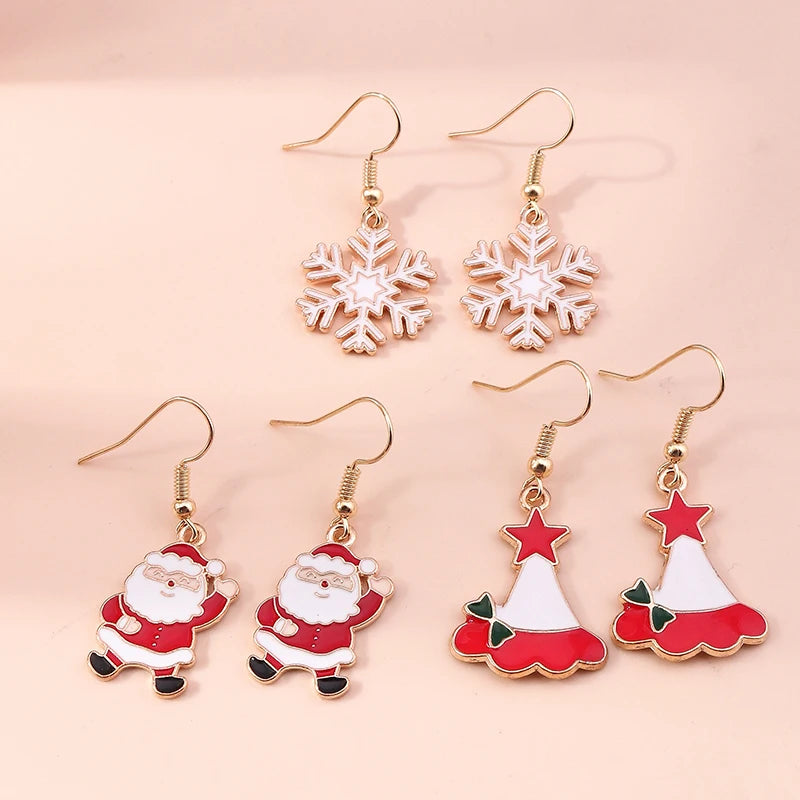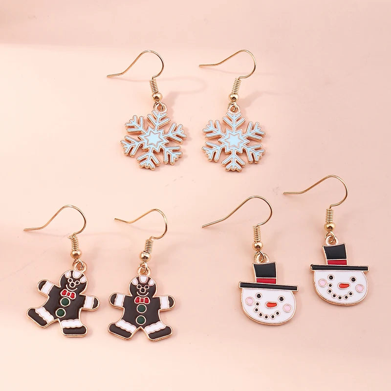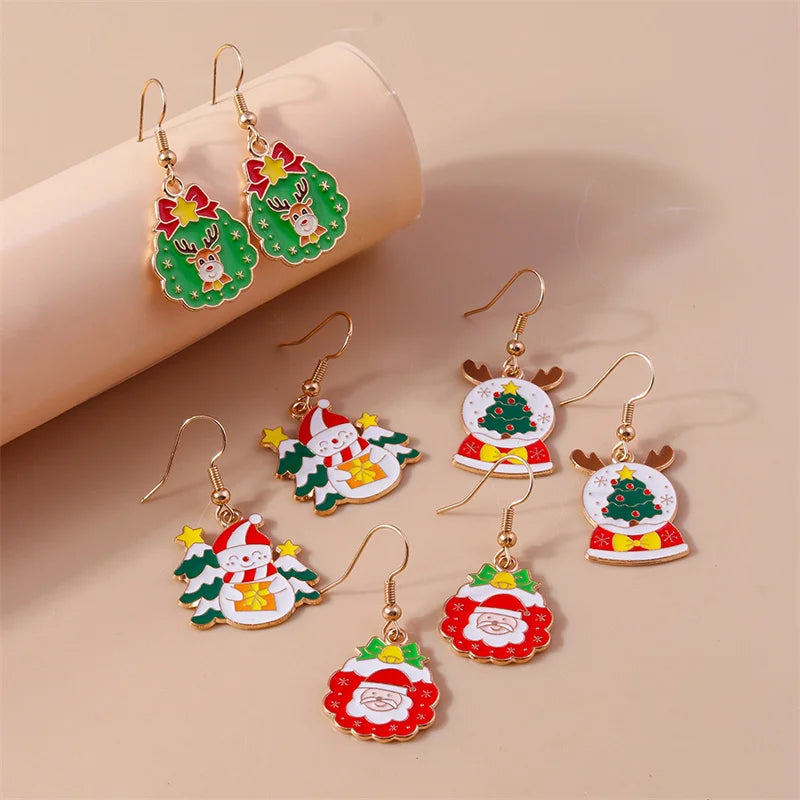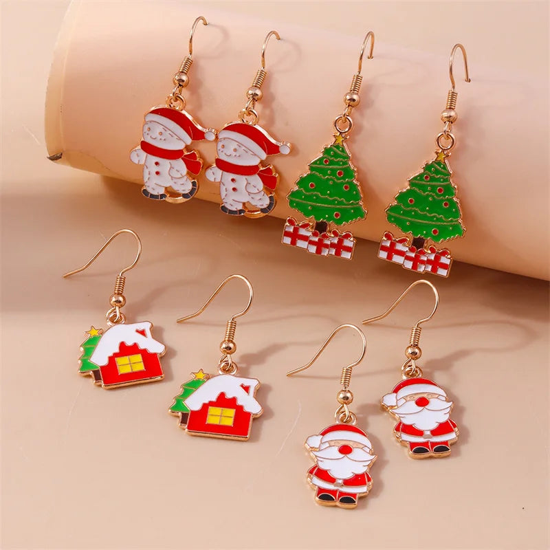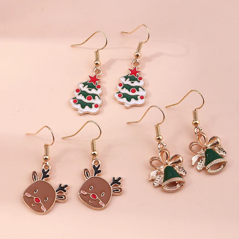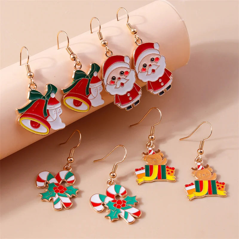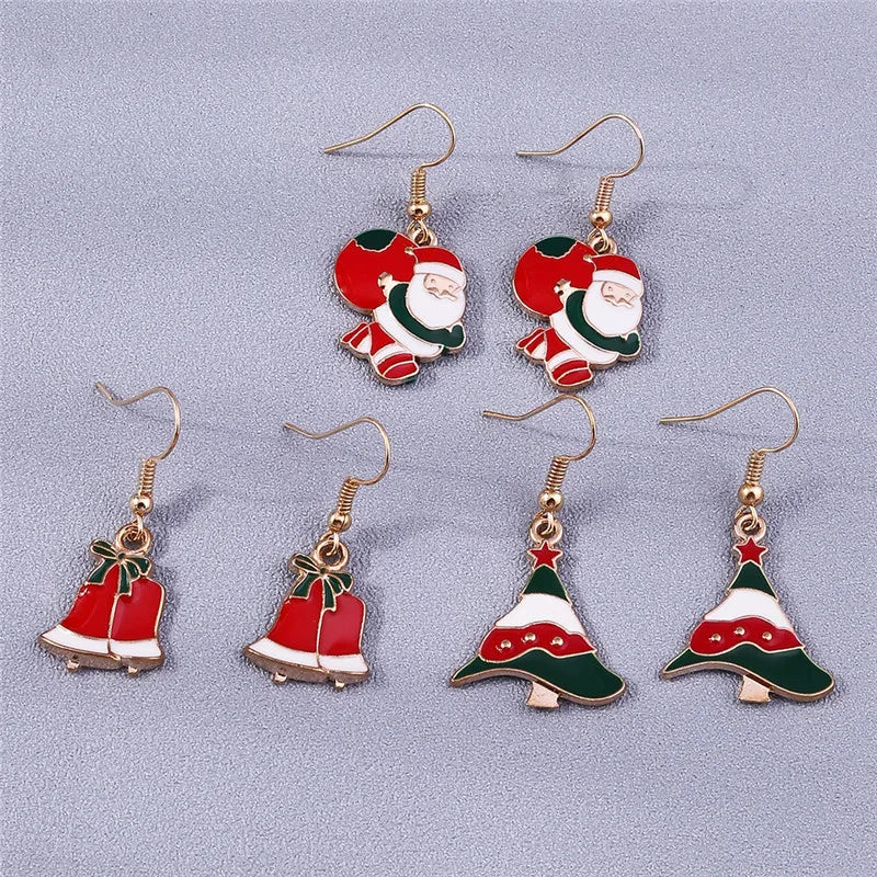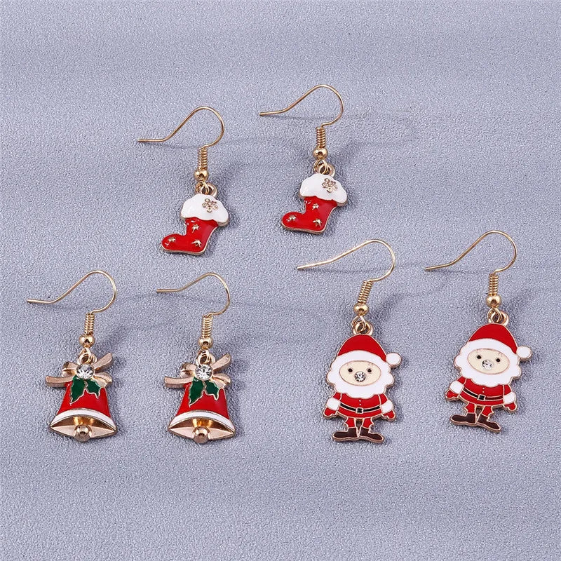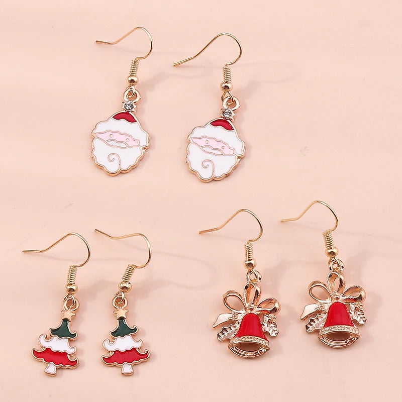 Kerst oorbellen set met kerstman, rendier, ster, bel en sneeuwpop