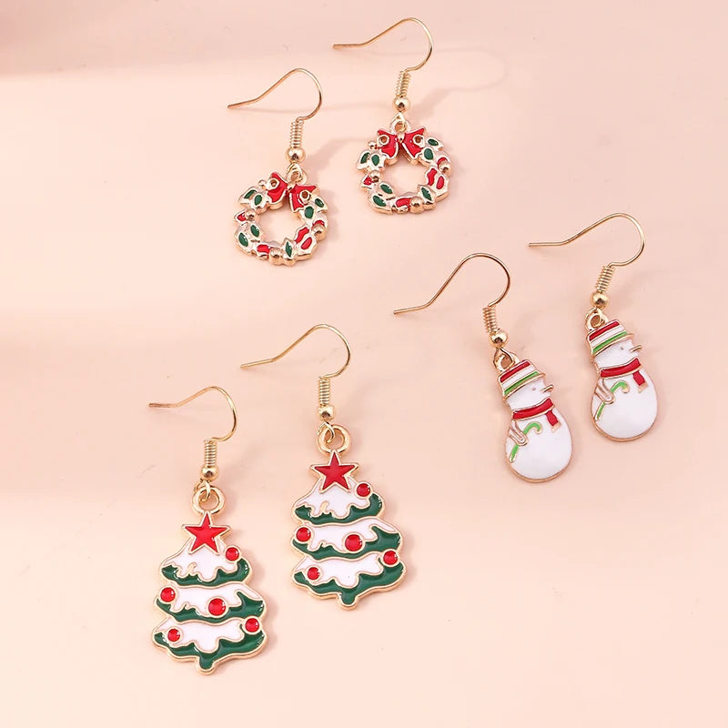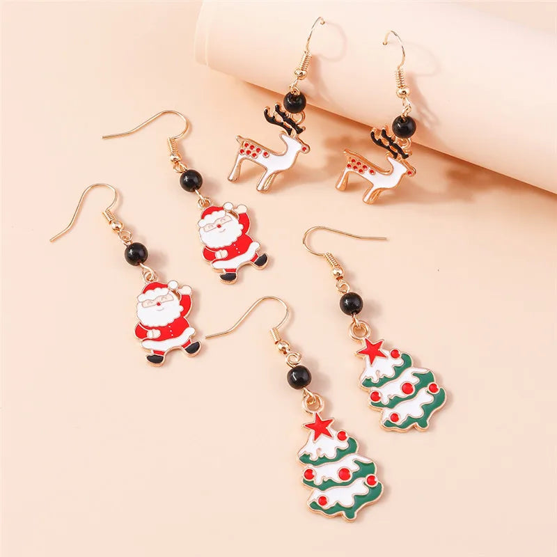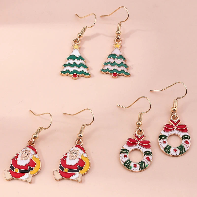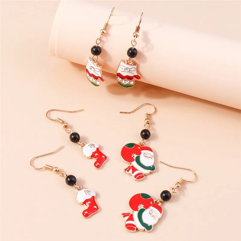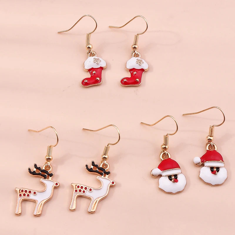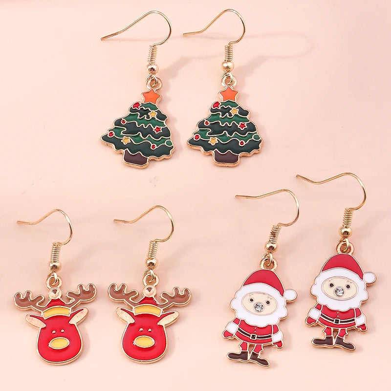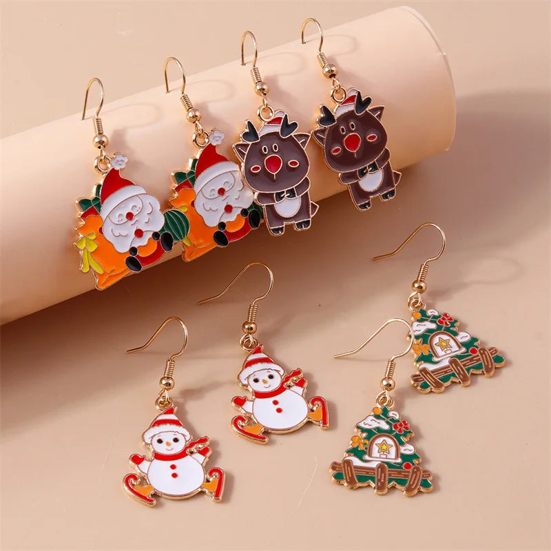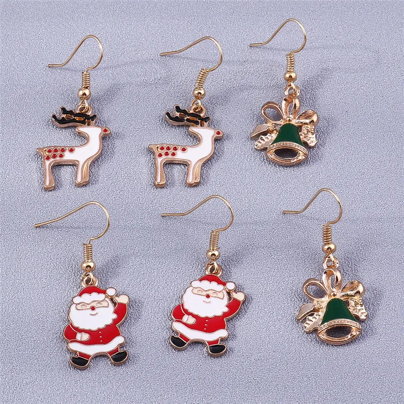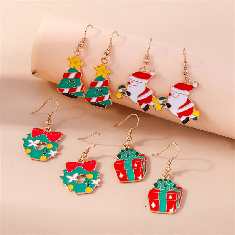 Kerst oorbellen set met kerstman, rendier, ster, bel en sneeuwpop