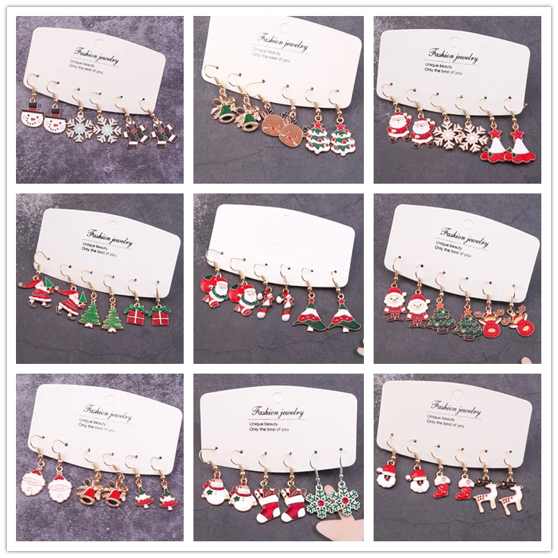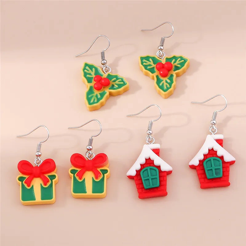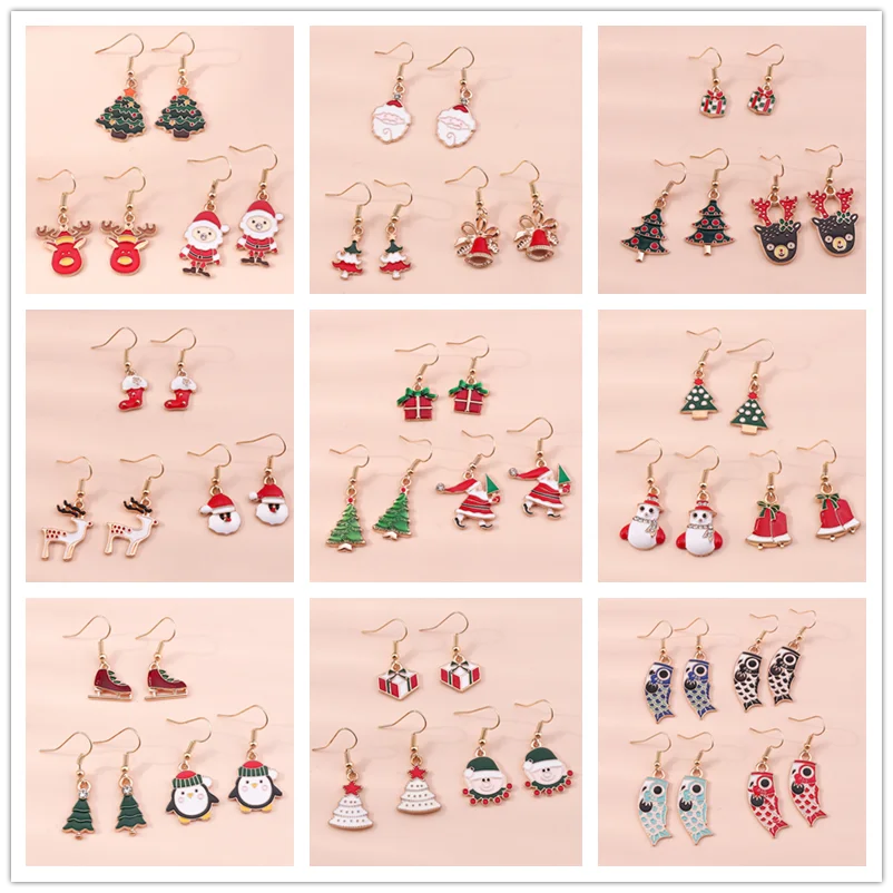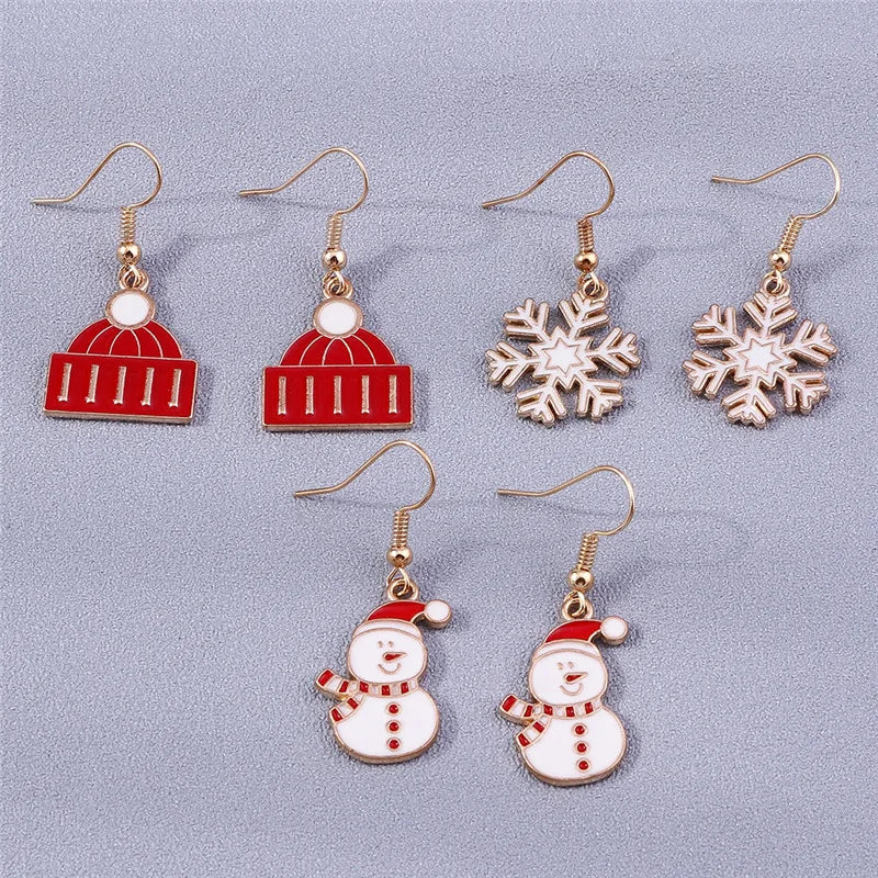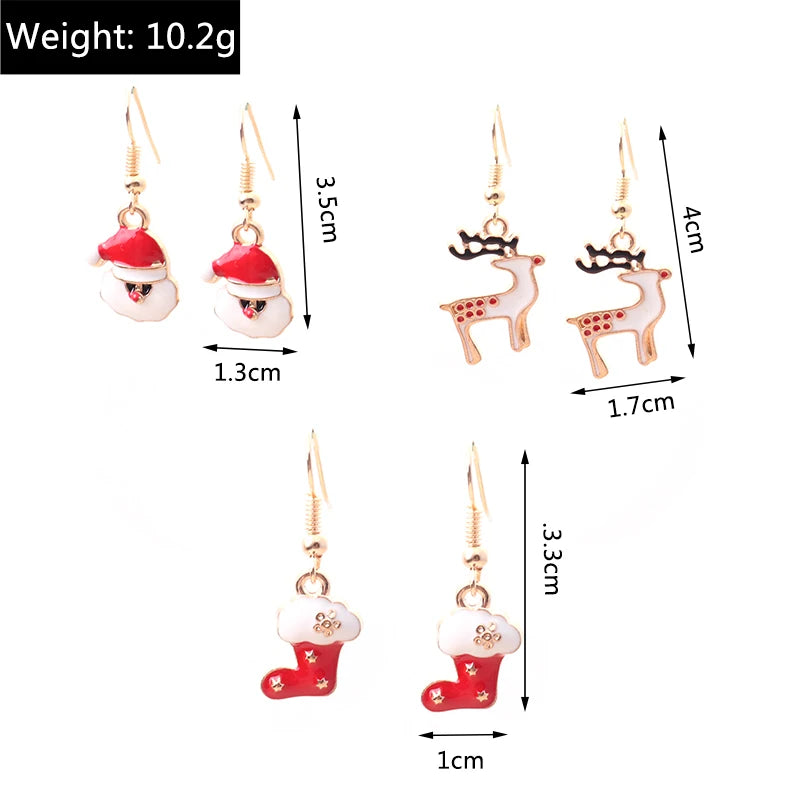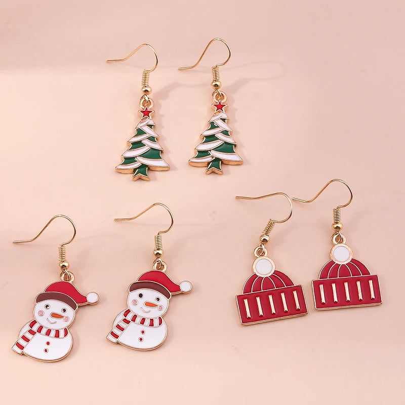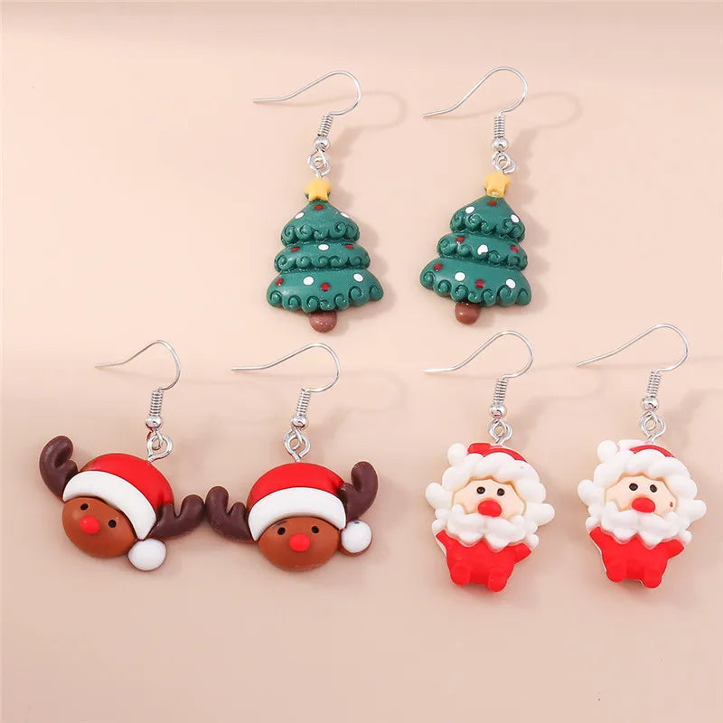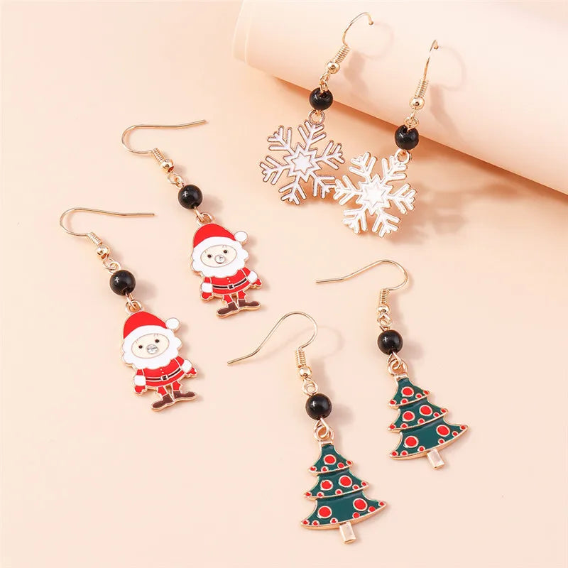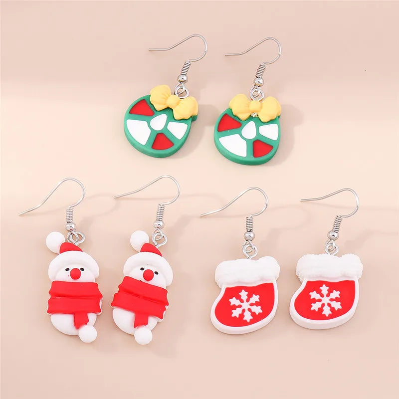 Kerst oorbellen set met kerstman, rendier, ster, bel en sneeuwpop