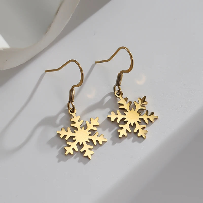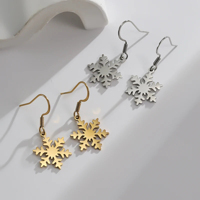 Kerst oorbellen sneeuwvlok hanger zilverkleur-goudkleurig roestvrijstaal lange dangle