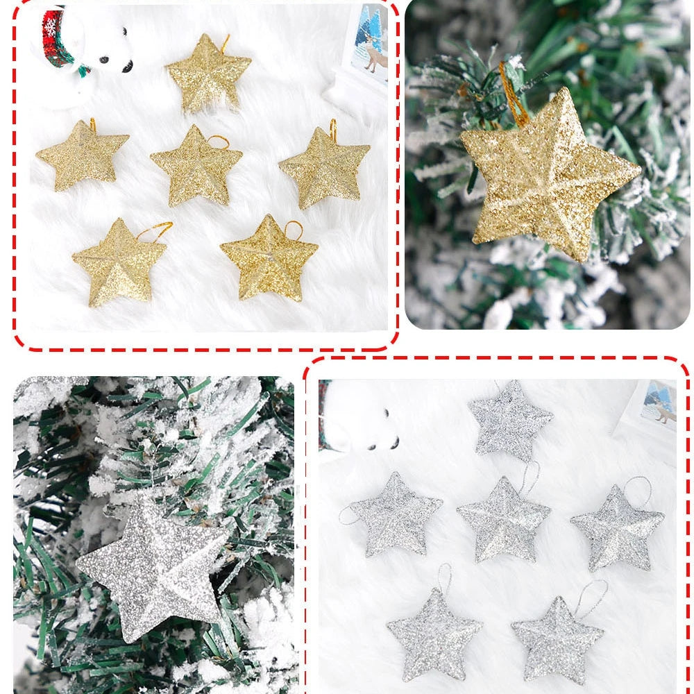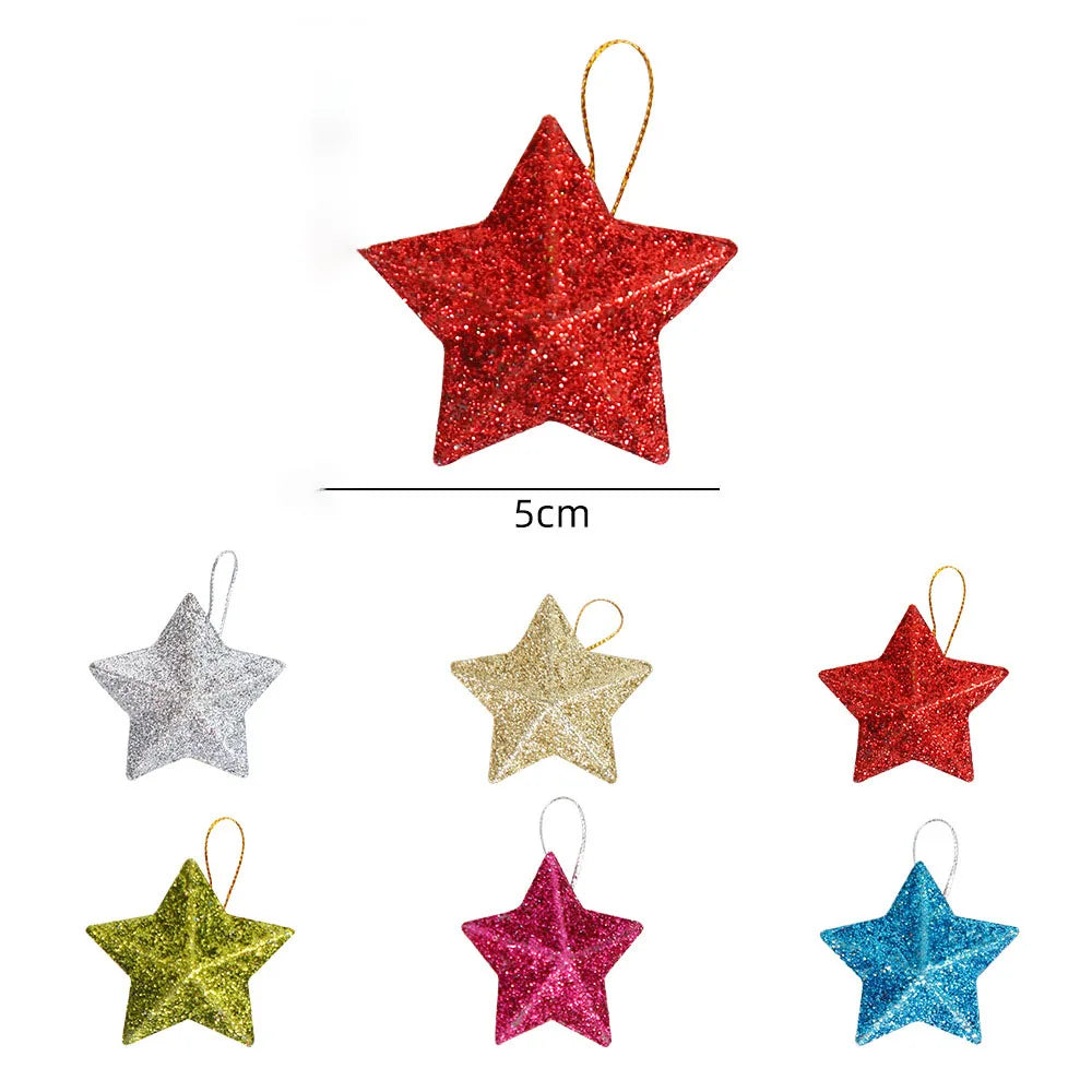 Kerst ornament voor Kerstboom – Glinsterende Ster Hanger 5cm (6/24 stuks)
