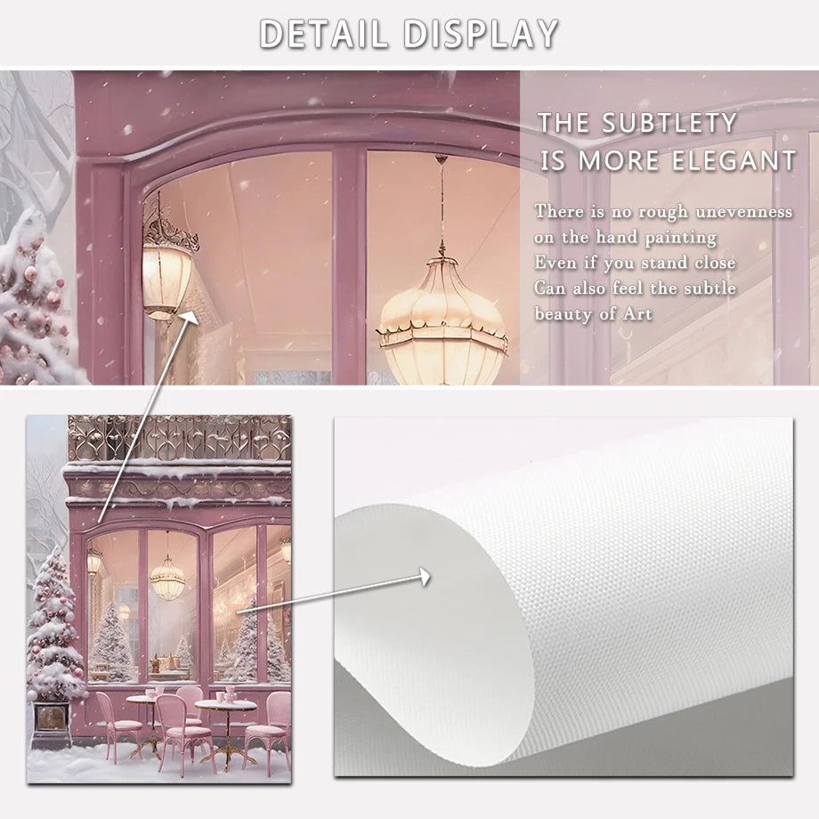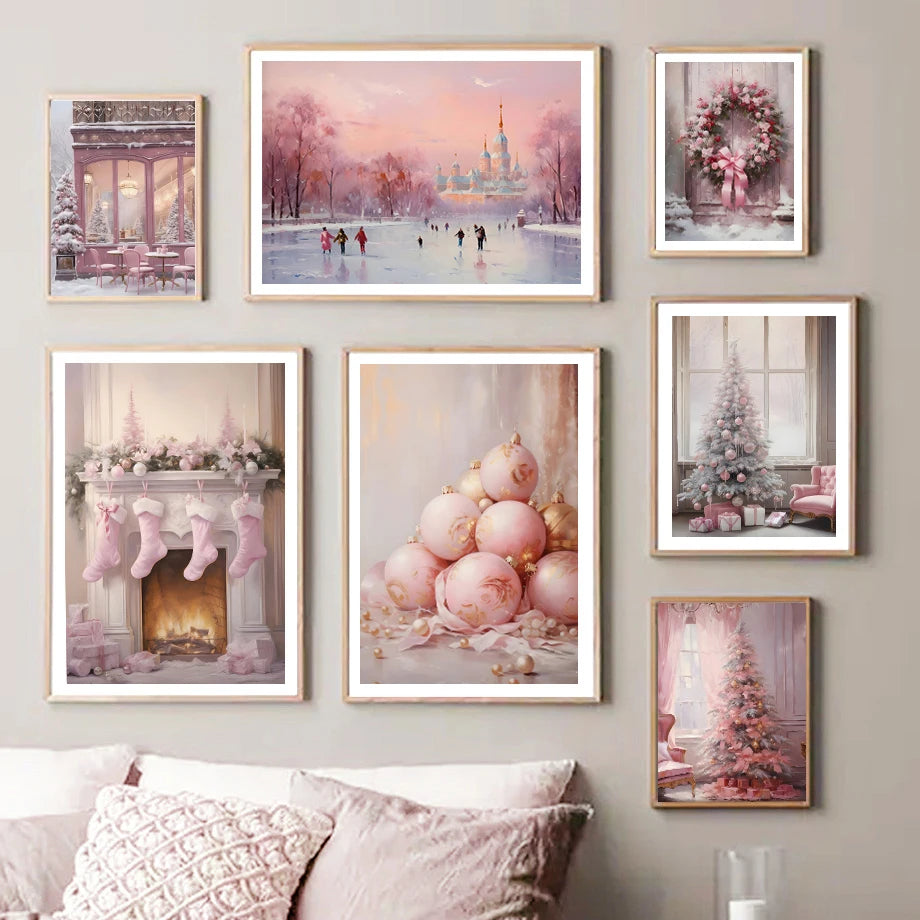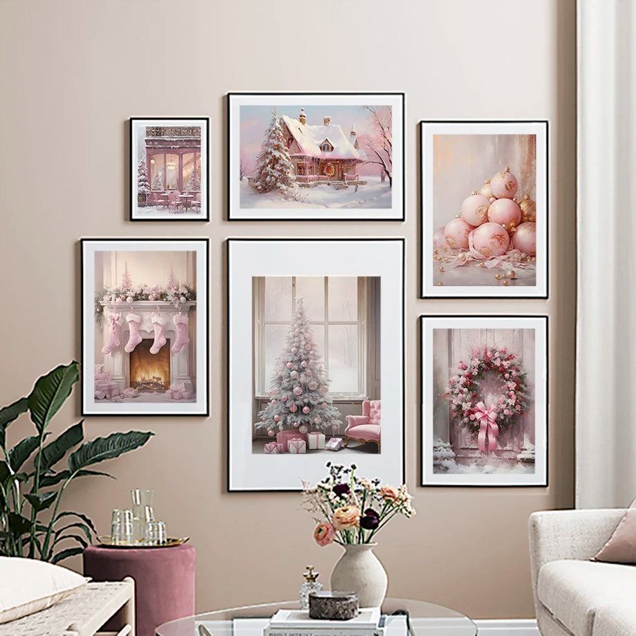 Breng de magie van de feestdagen in huis met dit prachtige canvas waarop een roze kerstboom, een charmant sneeuwhuis en sfeervolle winterdetails samenkomen. De zachte tinten en sprankelende accenten zorgen voor een warme, stijlvolle uitstraling die naadloos aansluit bij zowel moderne als klassieke interieurs.