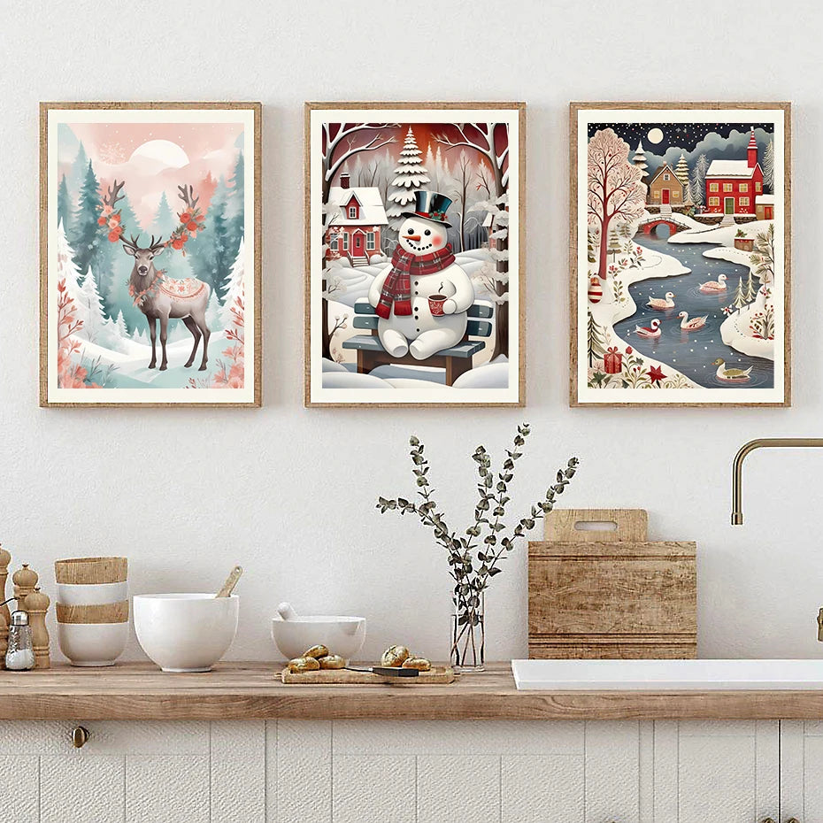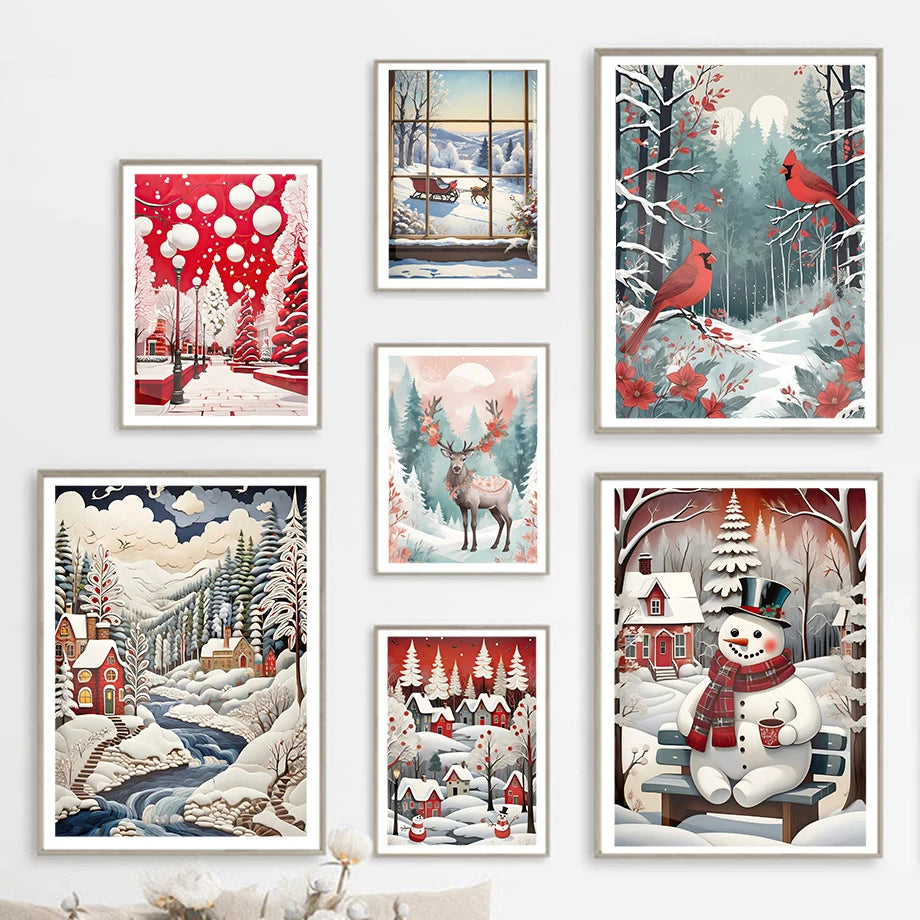 Kerst schilderij winter bos sneeuw decoratie canvas voor sfeervolle wandkunst