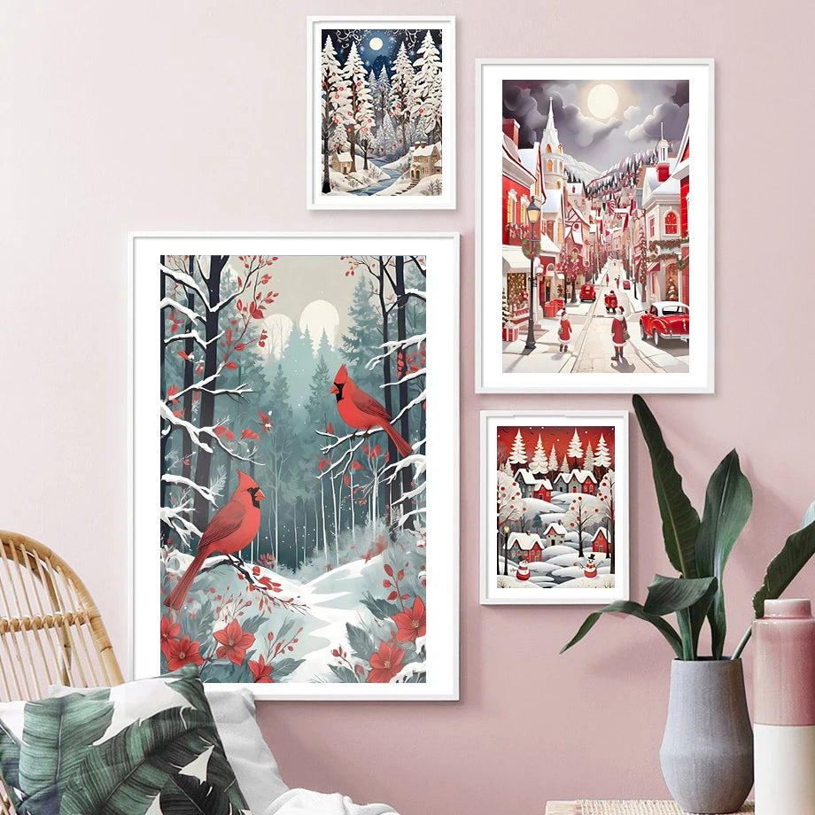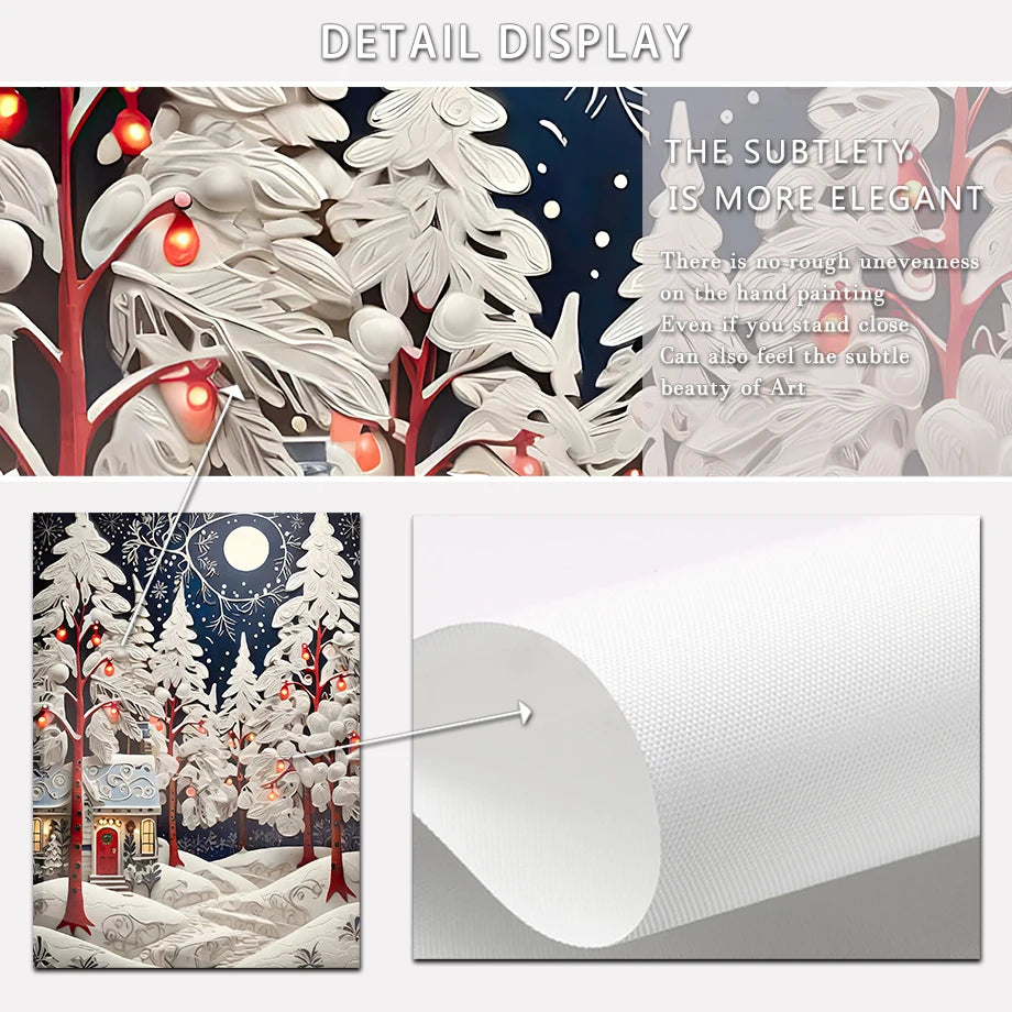 Breng de magie van de feestdagen in huis met dit prachtige kerst schilderij. Het winterse tafereel met een betoverend bos en sneeuwvlokken creëert direct een warme en gezellige kerstsfeer in elke ruimte. Perfect om uw woonkamer, eetkamer of slaapkamer tijdens de feestdagen te verfraaien.