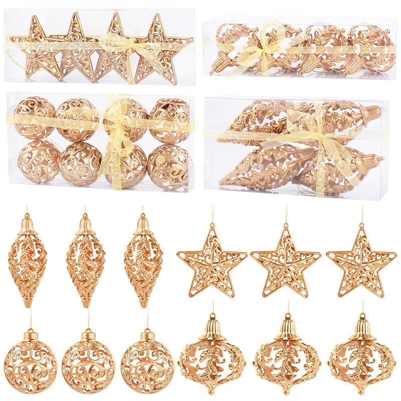 Kerstballen set goud met holle ster hangers voor kerstboomdecoratie