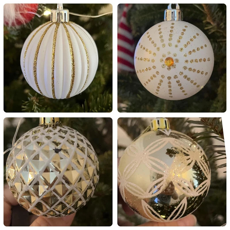 De kerstballen zijn gemaakt van hoogwaardig, lichtgewicht materiaal waardoor ze stevig maar toch veilig zijn voor gezinnen met kinderen en huisdieren. Ze kunnen jaar na jaar opnieuw gebruikt worden zonder dat ze hun glans verliezen.