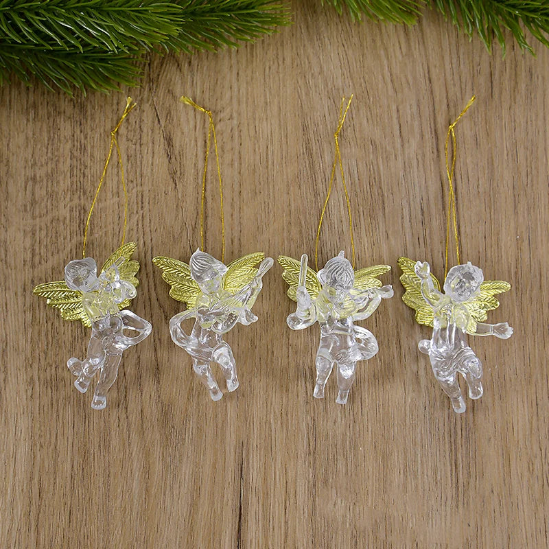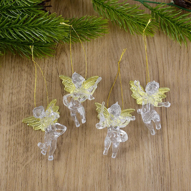 Kerstboom ornament acryl engeltjes hangdecoratie set van 4 stuks