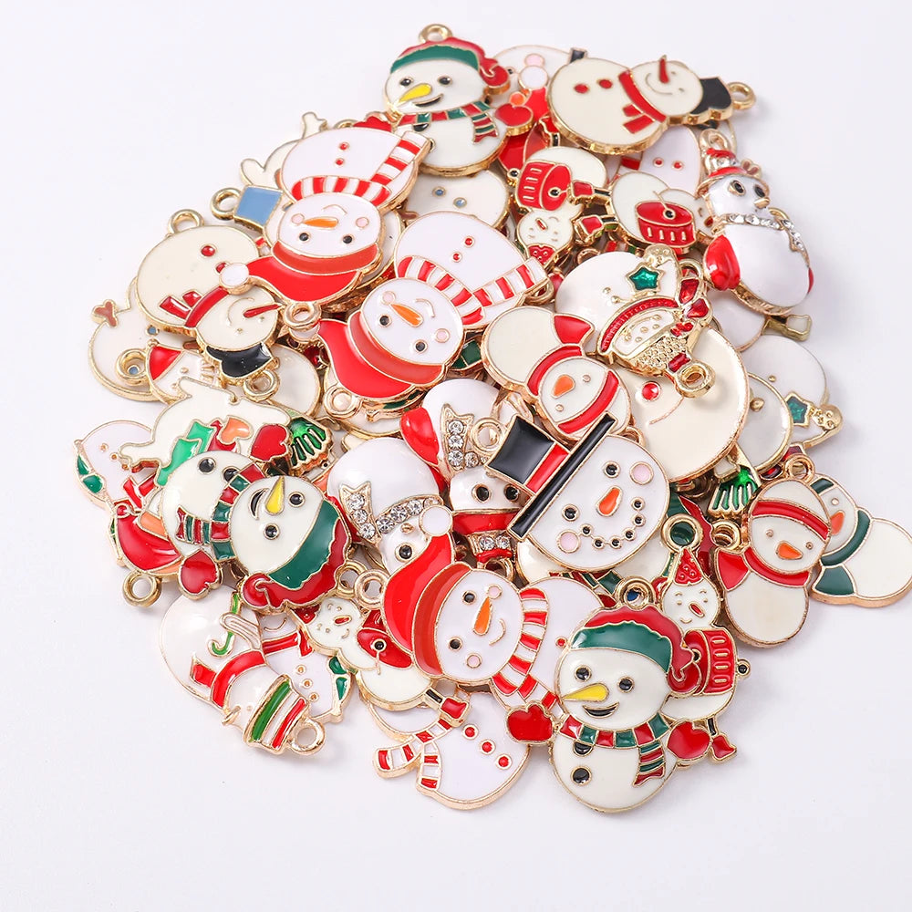 Deze set van 20 vrolijke sneeuwpop hangers is een perfecte aanvulling voor iedereen die graag unieke sieraden maakt tijdens de feestdagen. De bedels zijn afgewerkt met kleurrijk emaille en stralen een warme, winterse sfeer uit. Ideaal om de feeststemming toe te voegen aan je sieradencreaties.