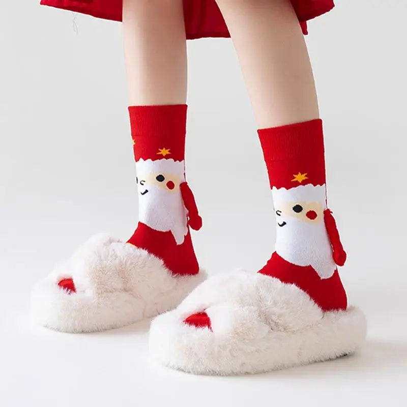 Deze kerstsok is niet zomaar een winters accessoire, maar een speels en creatief mode-item dat direct de kerstsfeer oproept. De sokken zijn voorzien van een vrolijke kerstman, sfeervolle kerstboom en een bijzonder detail: door de magneet in de stof blijven de sokken als het ware hand in hand verbonden. Perfect om samen te dragen of als origineel cadeau voor de feestdagen.