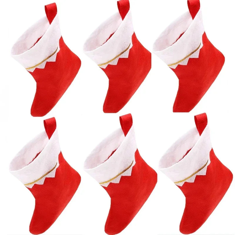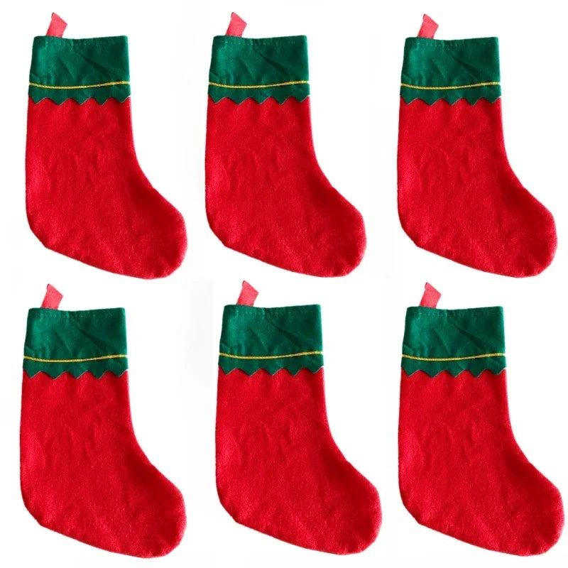 Kerstsokken set 6 stuks wit groen goud draad decoratie cadeauzak
