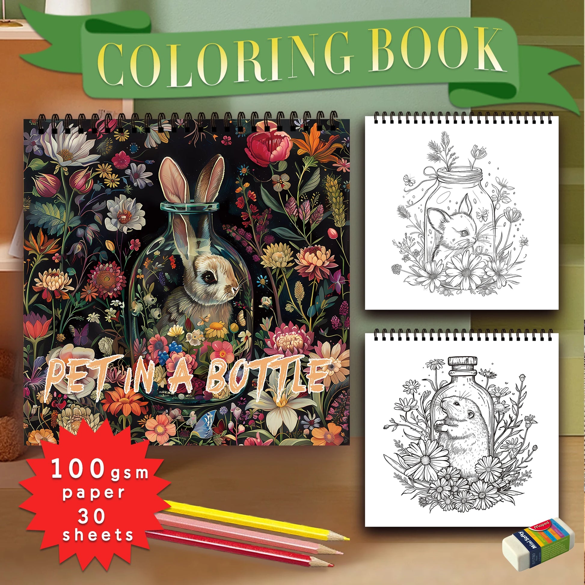 Kleurboek voor volwassenen – 30 rustgevende tekenpagina’s op dik papier - Pet in a bottle