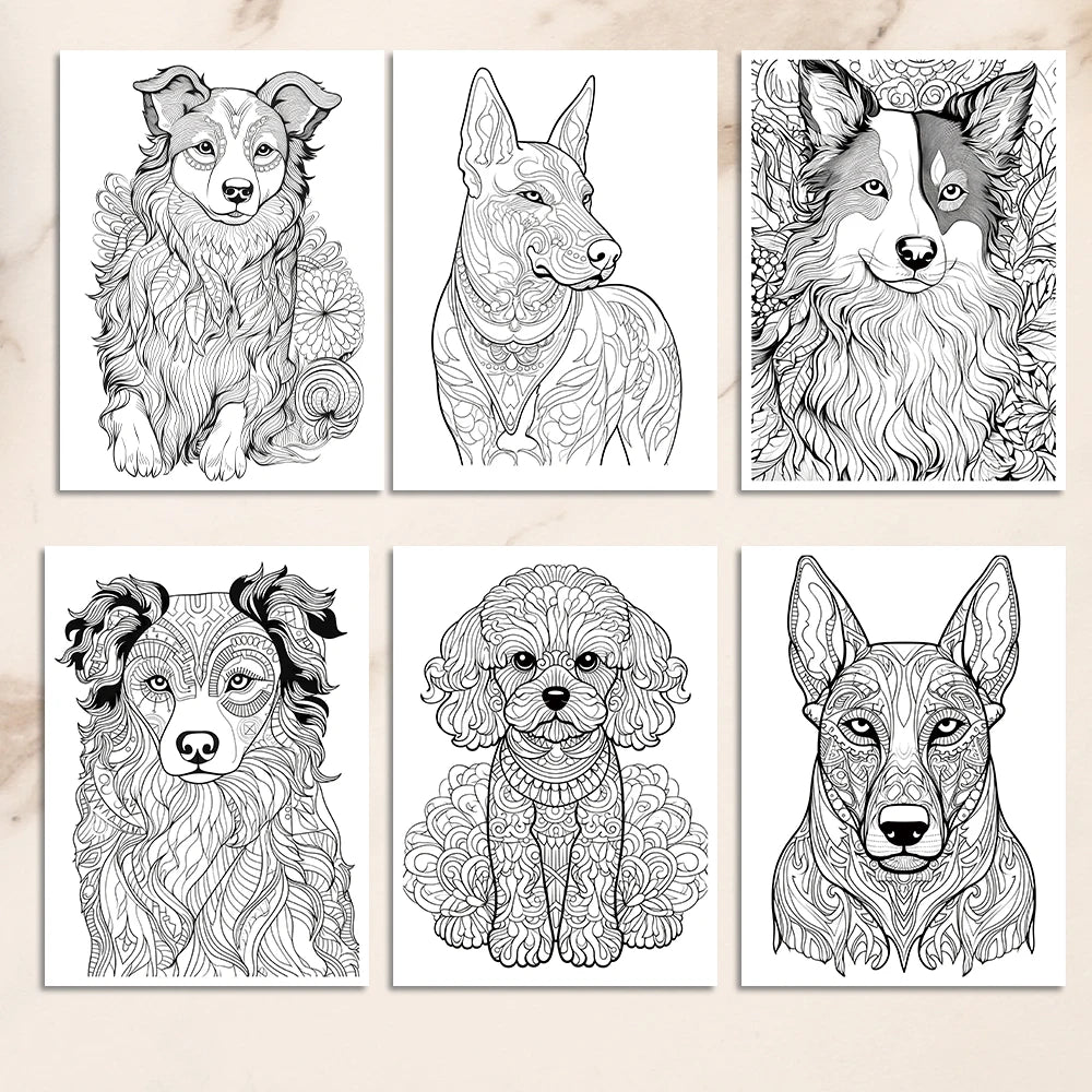 Kleurboek voor volwassenen met honden – ontspannende tekeningen A4 formaat