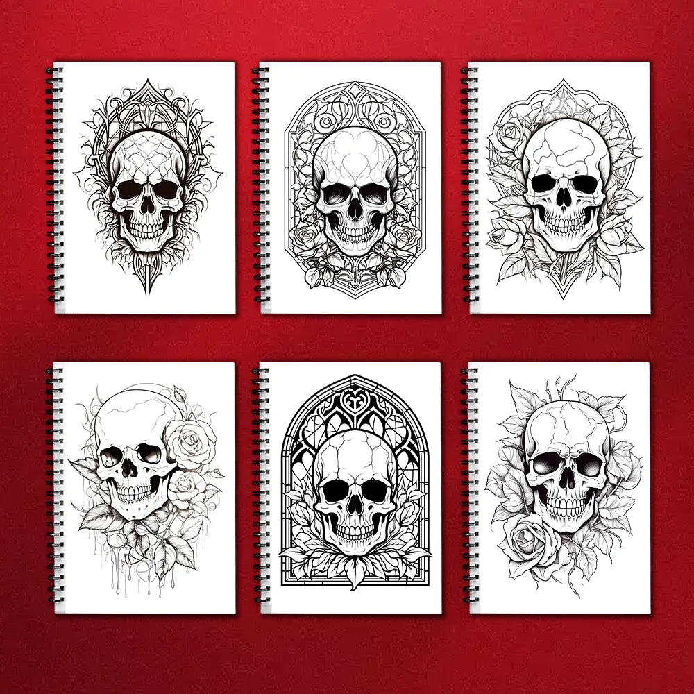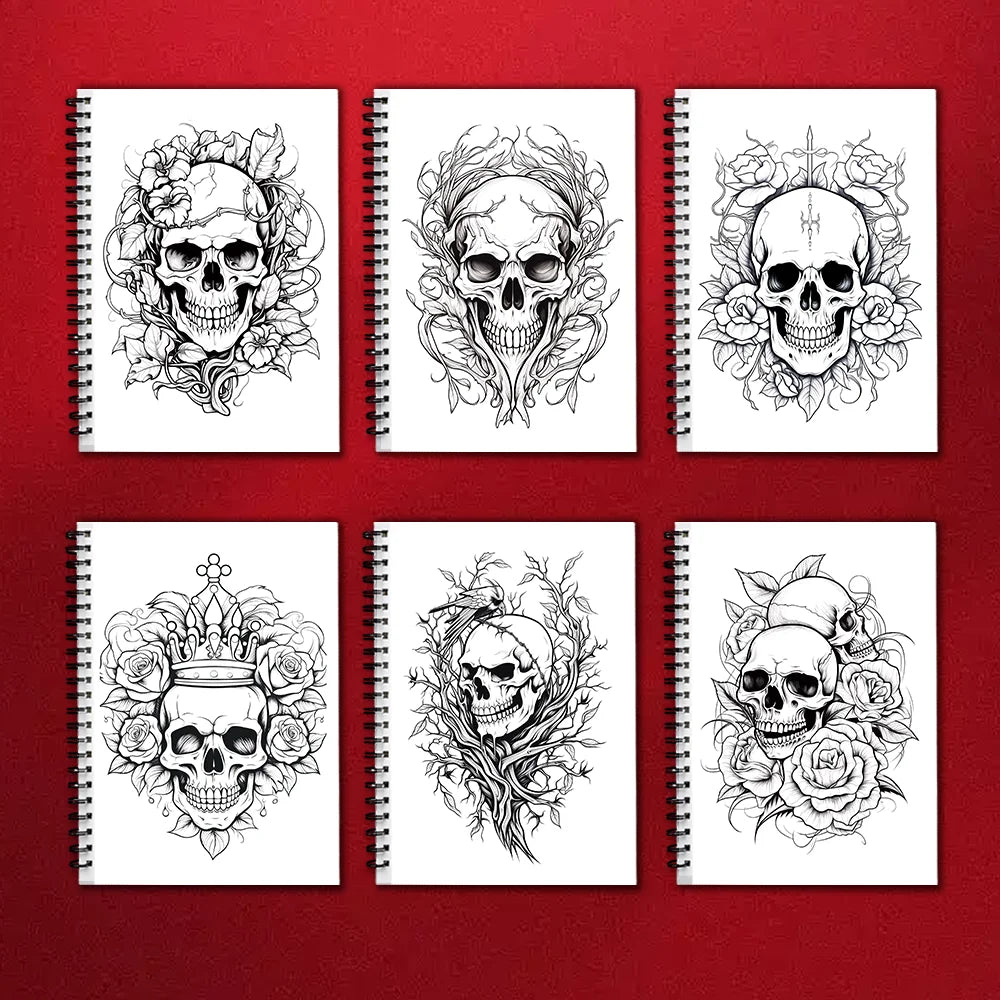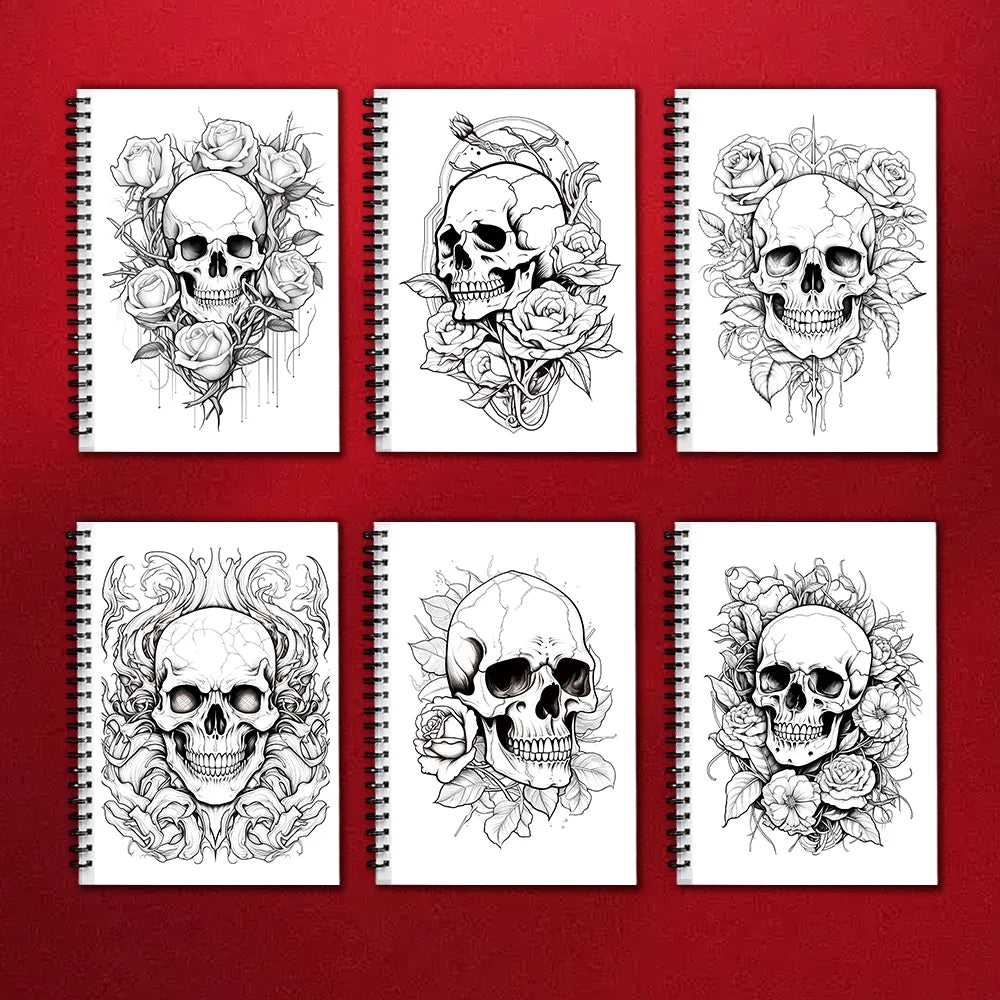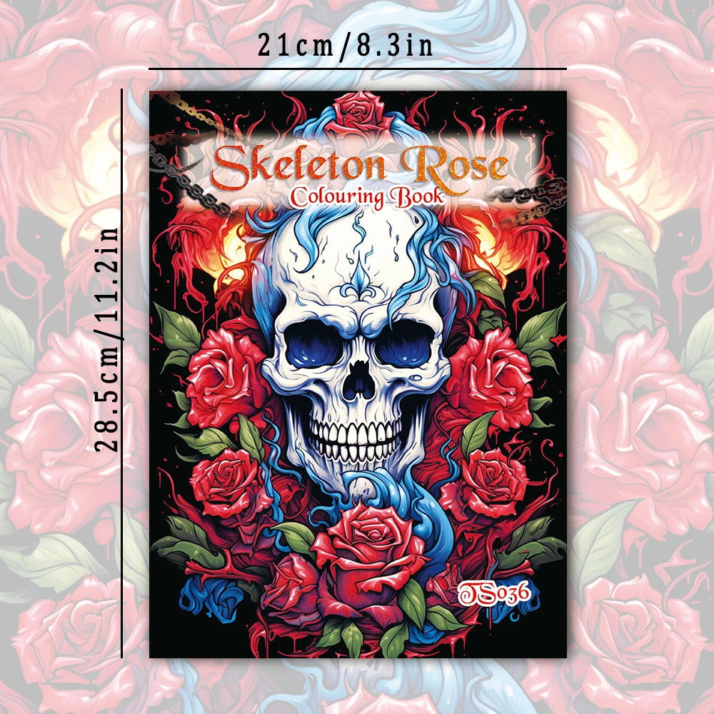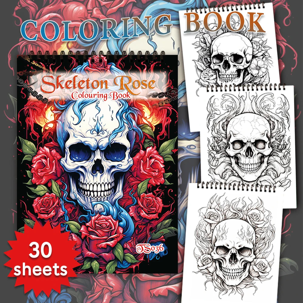 Kleurboek voor volwassenen – Skelet met rozen, 30 pagina’s