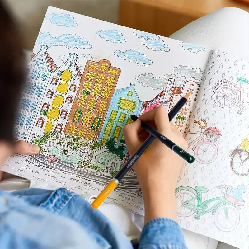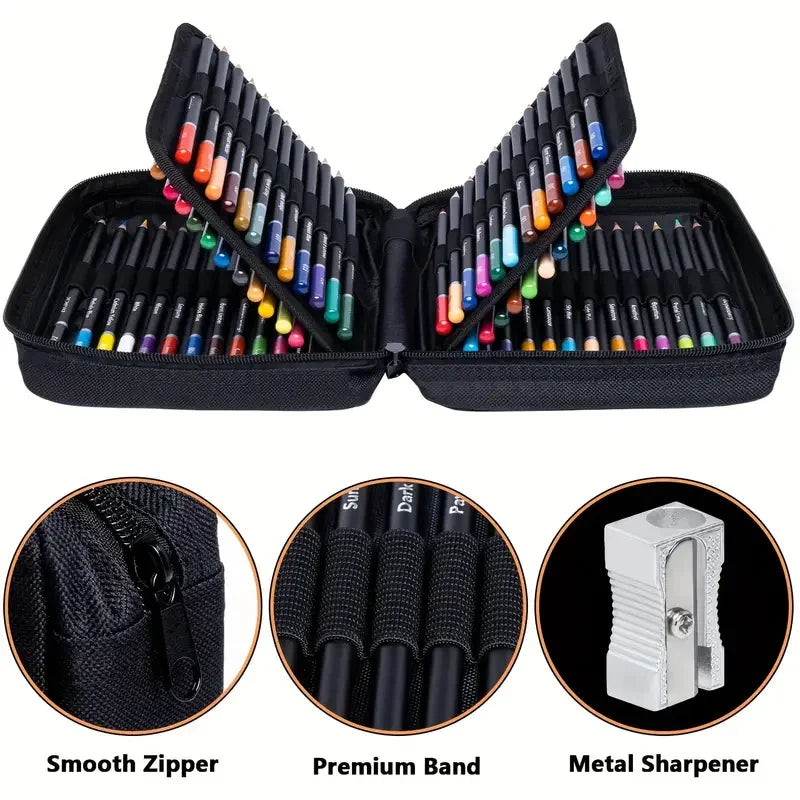 De set wordt geleverd in een handige ritsetui, waardoor je potloden netjes georganiseerd en makkelijk mee te nemen zijn. Perfect voor thuisgebruik of onderweg.