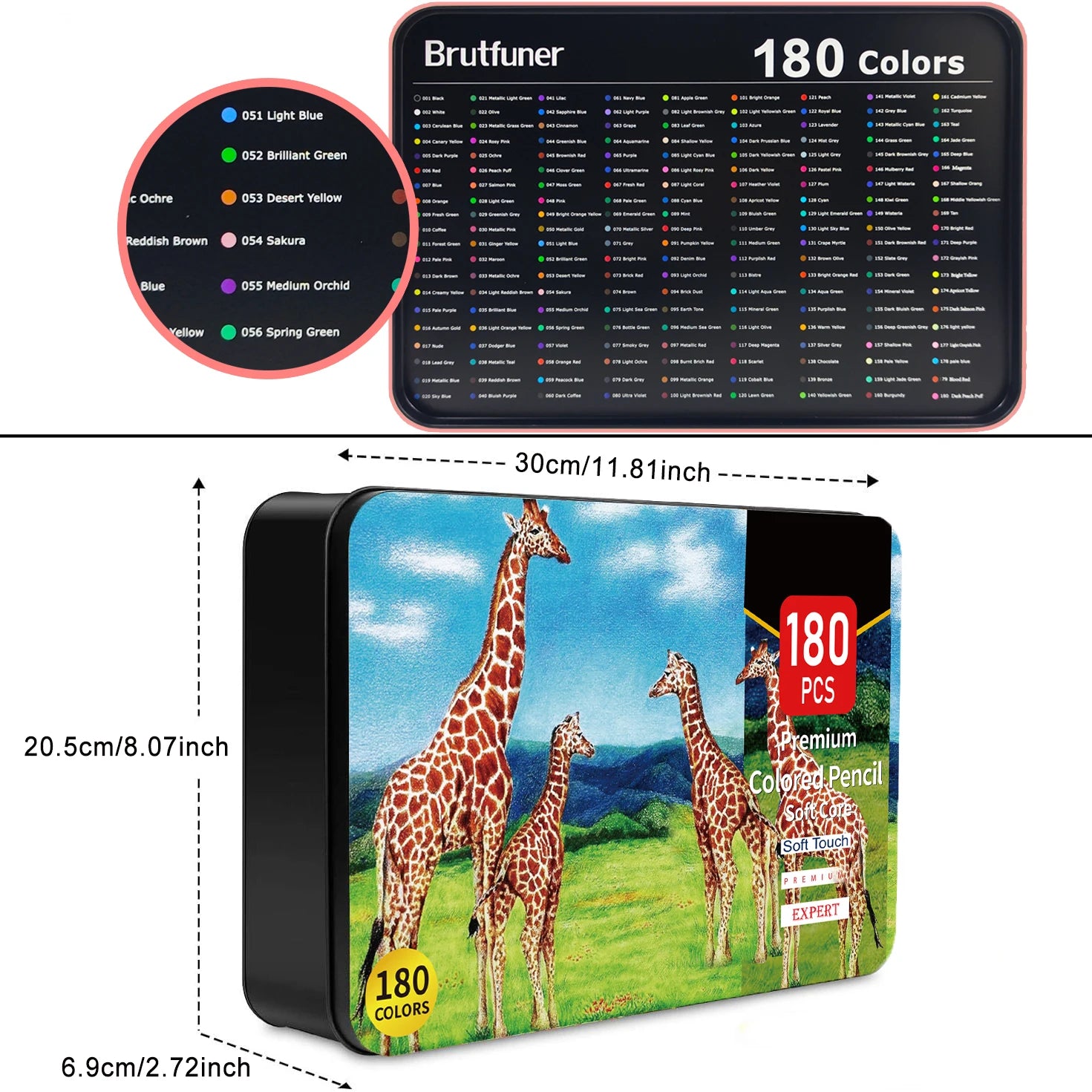 Breng je creativiteit tot leven met deze uitgebreide kleurpotlodenset van maar liefst 180 stuks. Elk potlood heeft een zachte kern die soepel over het papier glijdt en zorgt voor een intense kleurafgifte. Ideaal voor tekenen, inkleuren, schetsen, schaduwen en mengen.