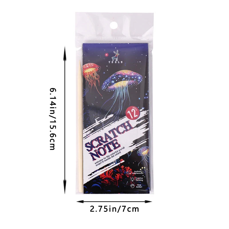 Geef lezen een creatieve twist met deze unieke krastekeningen set. Elke boekenlegger is gemaakt van speciaal scratch papier dat een regenboogkleurige achtergrond onthult wanneer je erover krast. Perfect om zelf te ontwerpen of te gebruiken als origineel cadeau voor vrienden, familie of kinderen. Door de stevige kwaliteit blijven de boekenleggers lang mooi en kun je keer op keer genieten van je eigen kunstwerken.