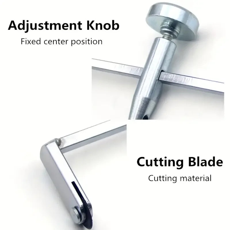 De cirkelsnijder is volledig verstelbaar, zodat je de diameter exact kunt afstemmen op je project. Het stevige metalen frame en de scherpe snijpunten zorgen voor een strakke afwerking en een lange levensduur. Het handvat ligt goed in de hand en biedt optimale controle tijdens het snijden, zelfs bij intensief gebruik.