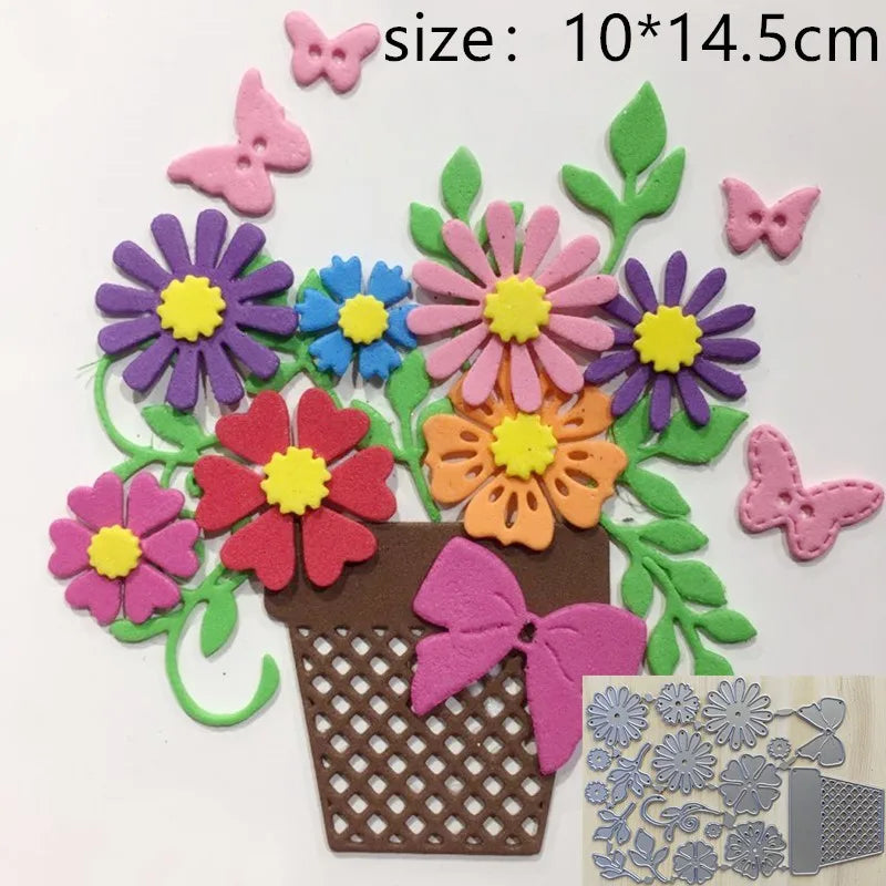 Voeg een vleugje charme toe aan je creatieve projecten met deze metalen snijmal in de vorm van een bloempot met vlinder. Ideaal voor scrapbooking, het versieren van fotoalbums en het maken van unieke wenskaarten. De gedetailleerde uitsnede zorgt voor een elegant en verfijnd resultaat op papier. Compatibel met de meeste standaard stansmachines en perfect voor elke hobbyist die van papierkunst houdt.