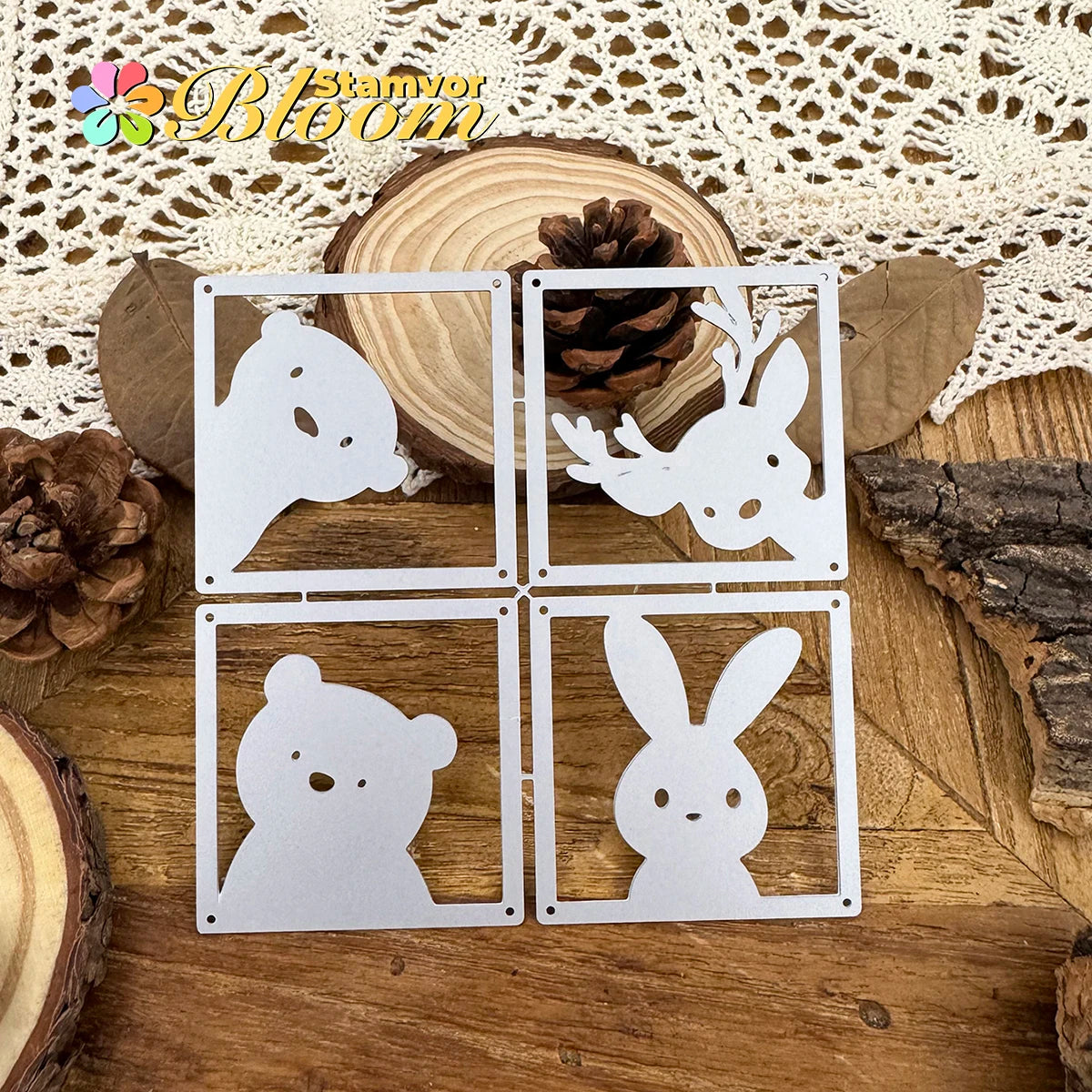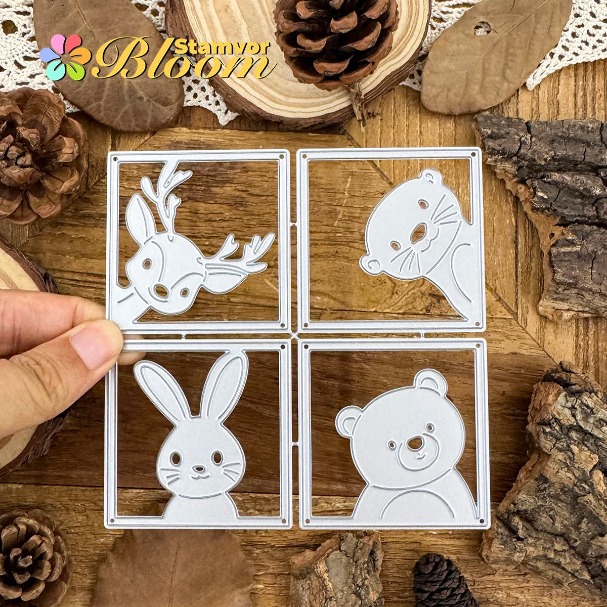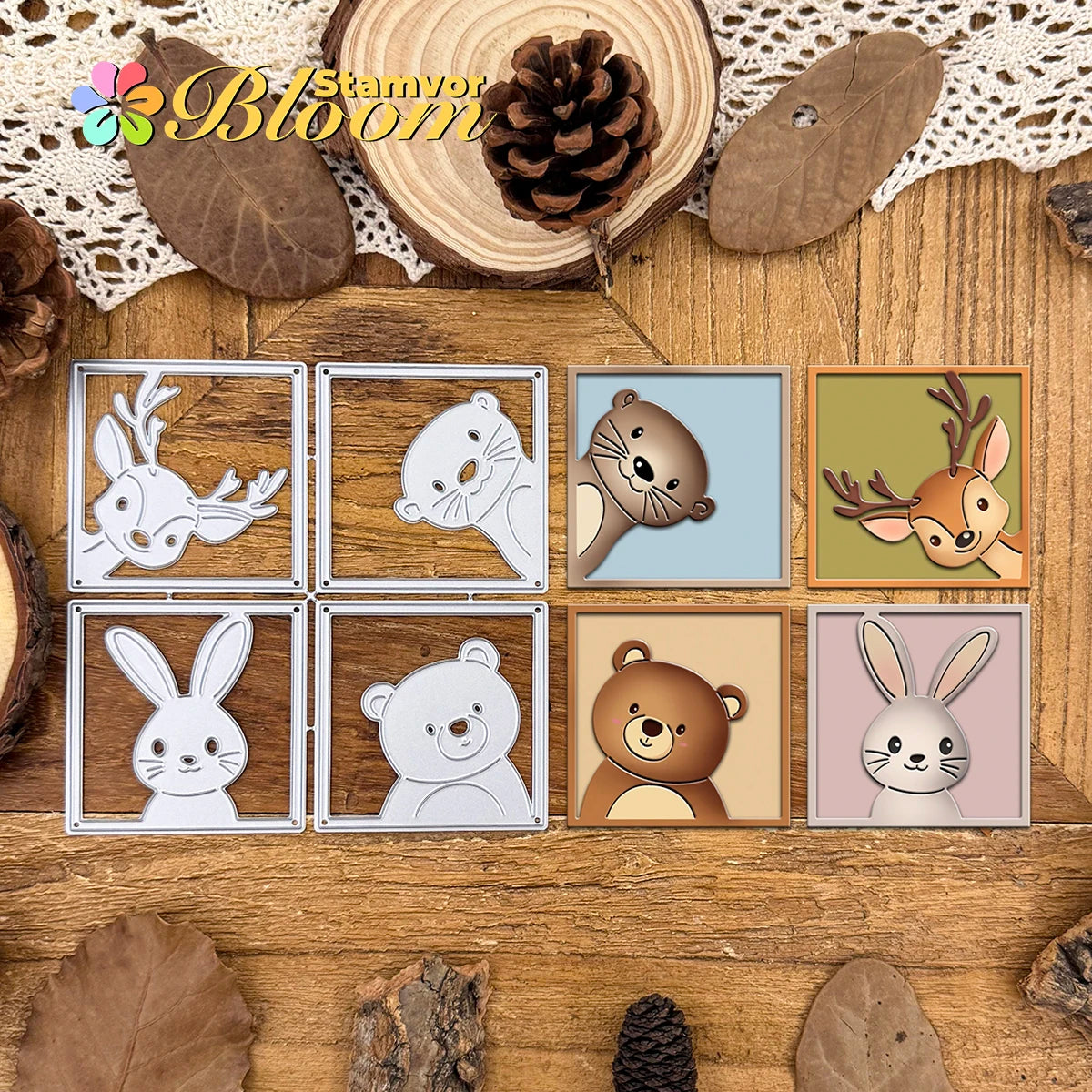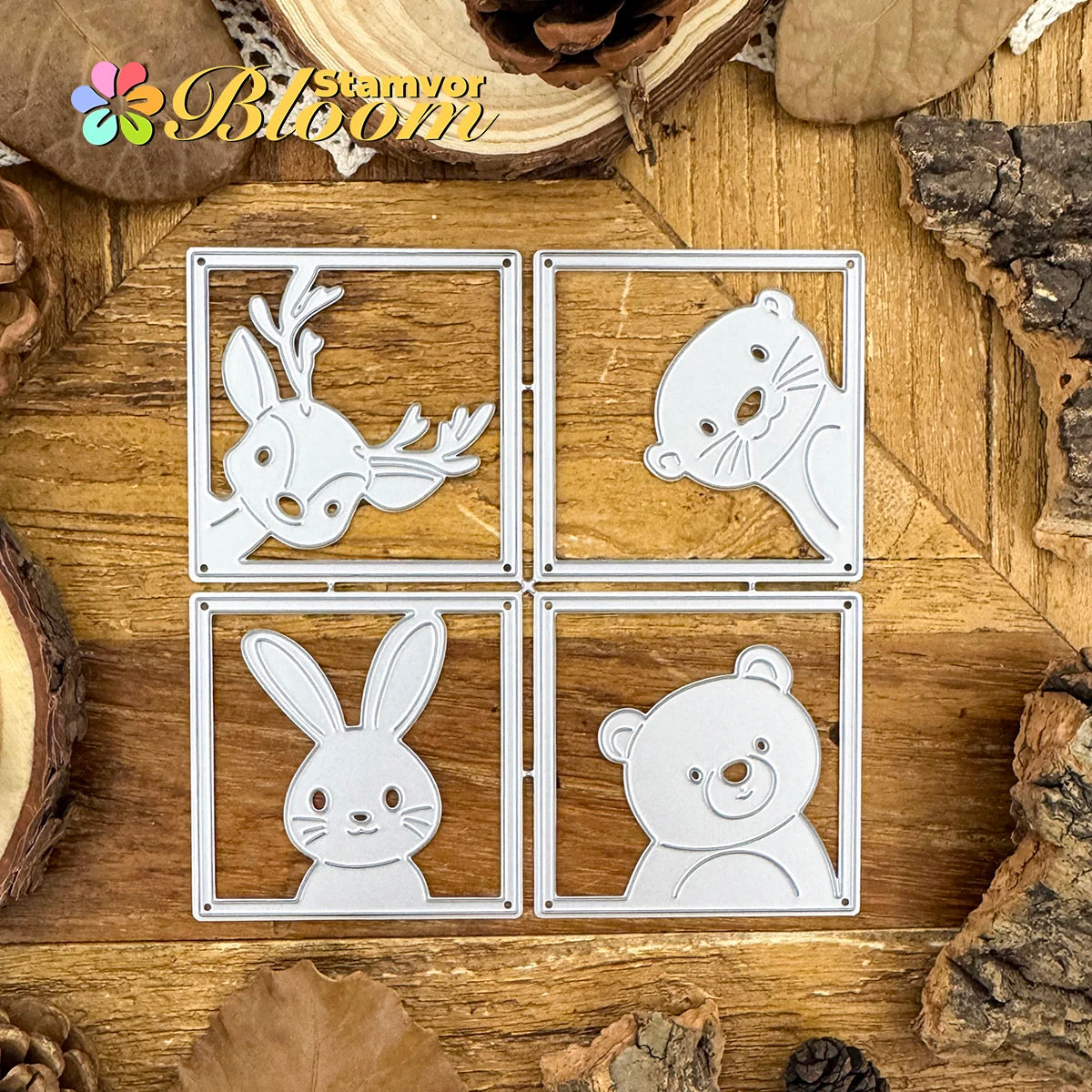 Metalen snijmal bosdieren in vierkante frames voor kaarten en decoratie