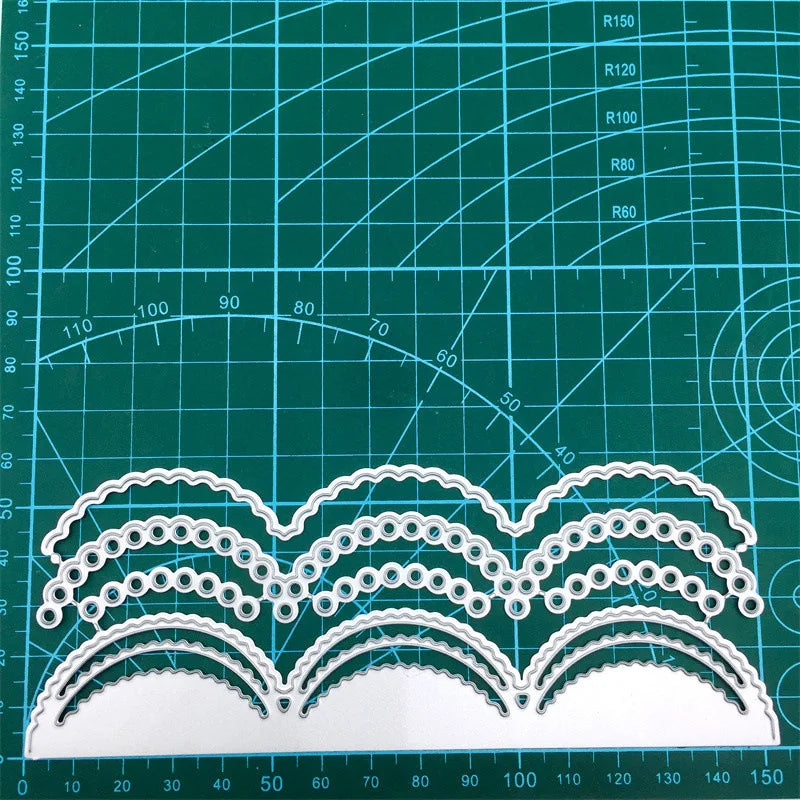 Voeg een sierlijke afwerking toe aan je creaties met deze metalen snijmal met golvend kanten randmotief. Perfect voor het decoreren van wenskaarten, fotoboeken en andere papierprojecten. Compatibel met de meeste gangbare snijmachines en ideaal voor fijn gedetailleerd snijwerk. Een stijlvolle toevoeging aan elke hobbycollectie!
