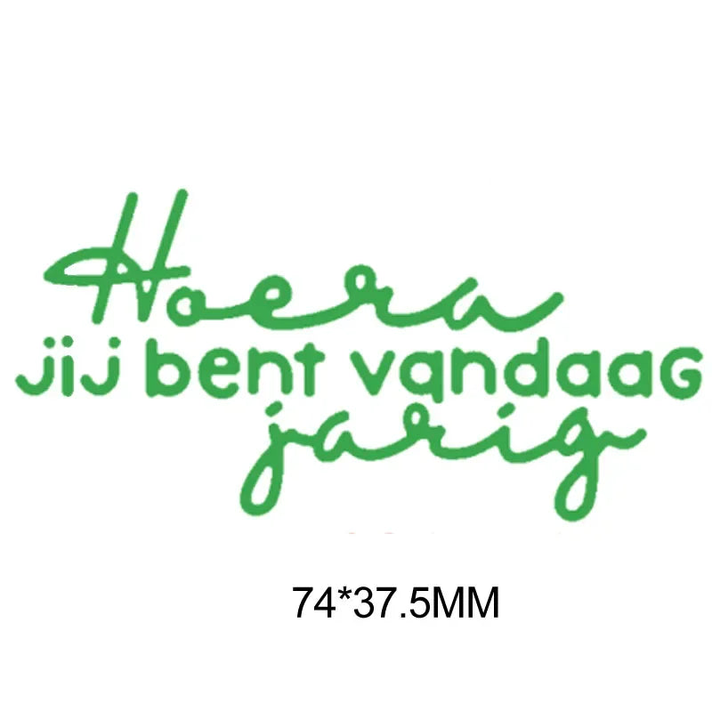 Metalen snijmal - Nederlandse teksten - Hoera jij bent vandaag jarig