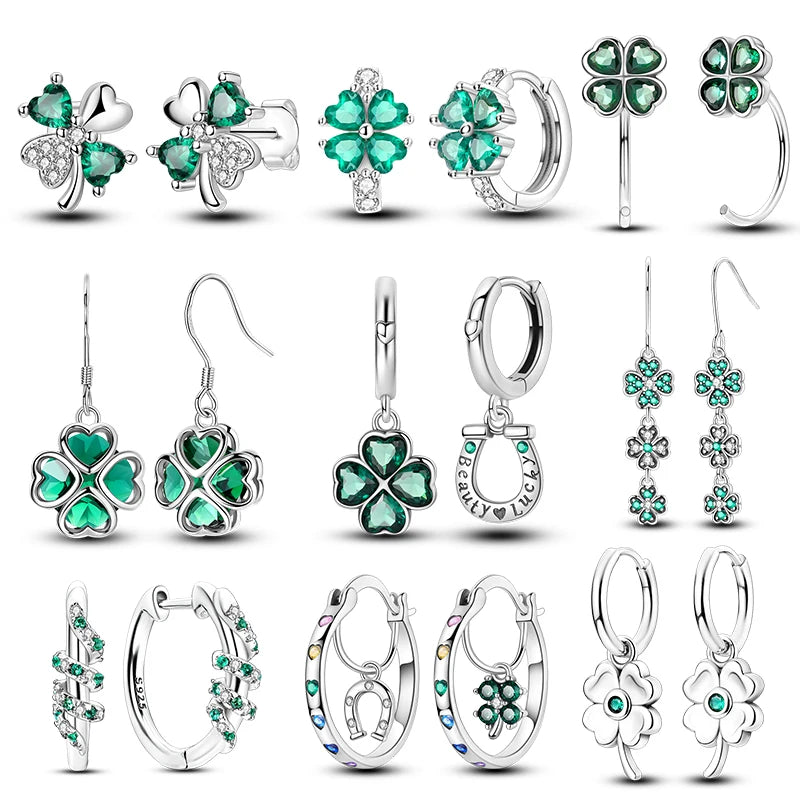 Oorbellen Klavertje Vier met Groene Zirkonia en Paardenschoen – 925 Zilver