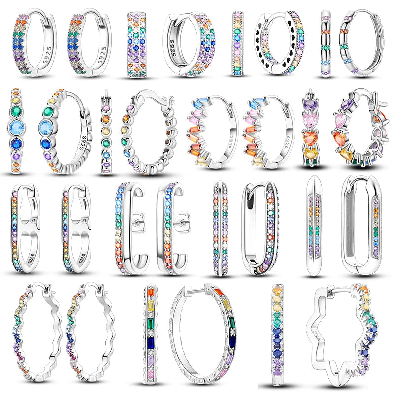 Breng kleur in je look met deze schitterende oorbellen met ronde hoepelvorm, vervaardigd uit 925 sterling zilver. De fijne afwerking en elegante U-vorm geven dit sieraad een stijlvolle en moderne uitstraling. Elke steen is zorgvuldig geplaatst en straalt in een regenboog van zirkonia kleuren, wat zorgt voor een speels maar verfijnd effect. Ideaal als eyecatcher bij een feestelijke outfit of als subtiele kleurtoevoeging aan je dagelijkse look. Dankzij het hoogwaardige zilver blijven deze oorbellen langdurig mooi en comfortabel om te dragen. Perfect als cadeau voor een geliefde of als verwennerij voor jezelf.