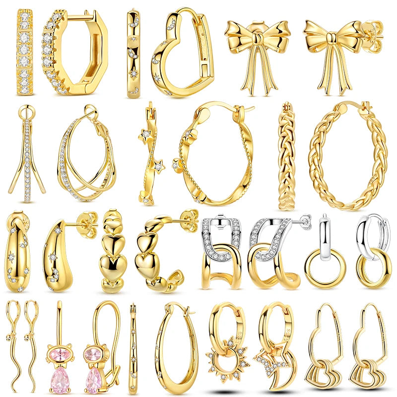 Oorbellen Strik Goudkleurig met Zirkonia en Veelzijdige Vorm