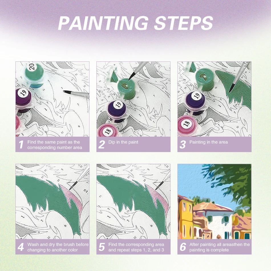 Het pakket bevat een voorgedrukt canvas, heldere acrylverf en penselen die prettig in de hand liggen. Het doek is al opgespannen in een stevige lijst, waardoor je kunstwerk direct een mooie plek aan de muur kan krijgen zodra het klaar is. De verf dekt goed en zorgt voor krachtige kleuren met een lichte glans, waardoor details extra opvallen.