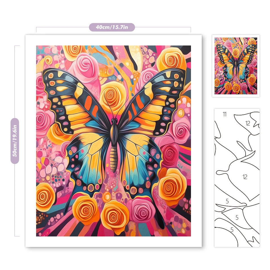 Schilderen op nummer Dieren - Vlinder met Kleurrijke Bloemen - 9965237
