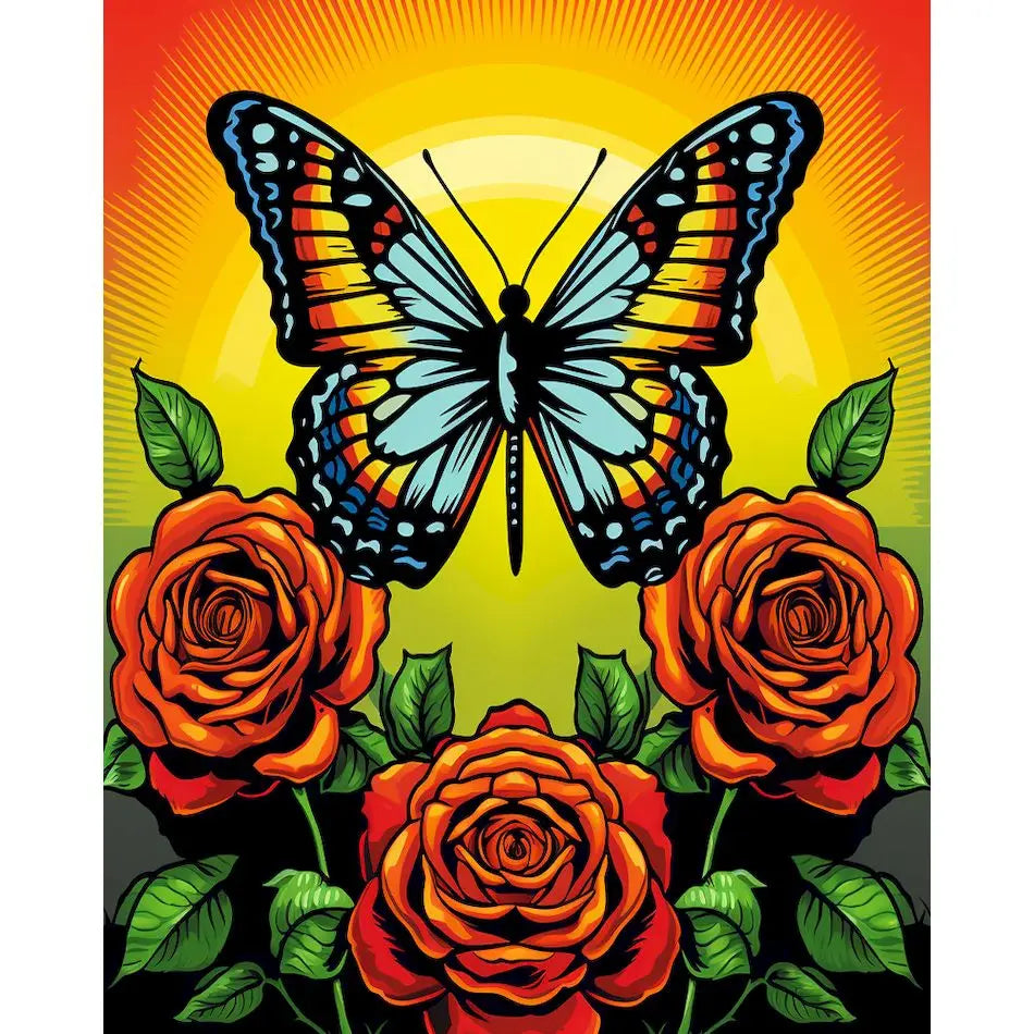 Schilderen op nummer Dieren - Vlinder met Kleurrijke Bloemen - 9966975