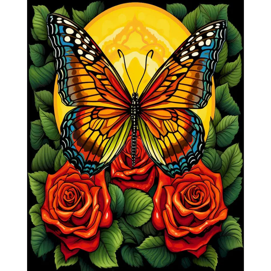 Schilderen op nummer Dieren - Vlinder met Kleurrijke Bloemen - 9966977
