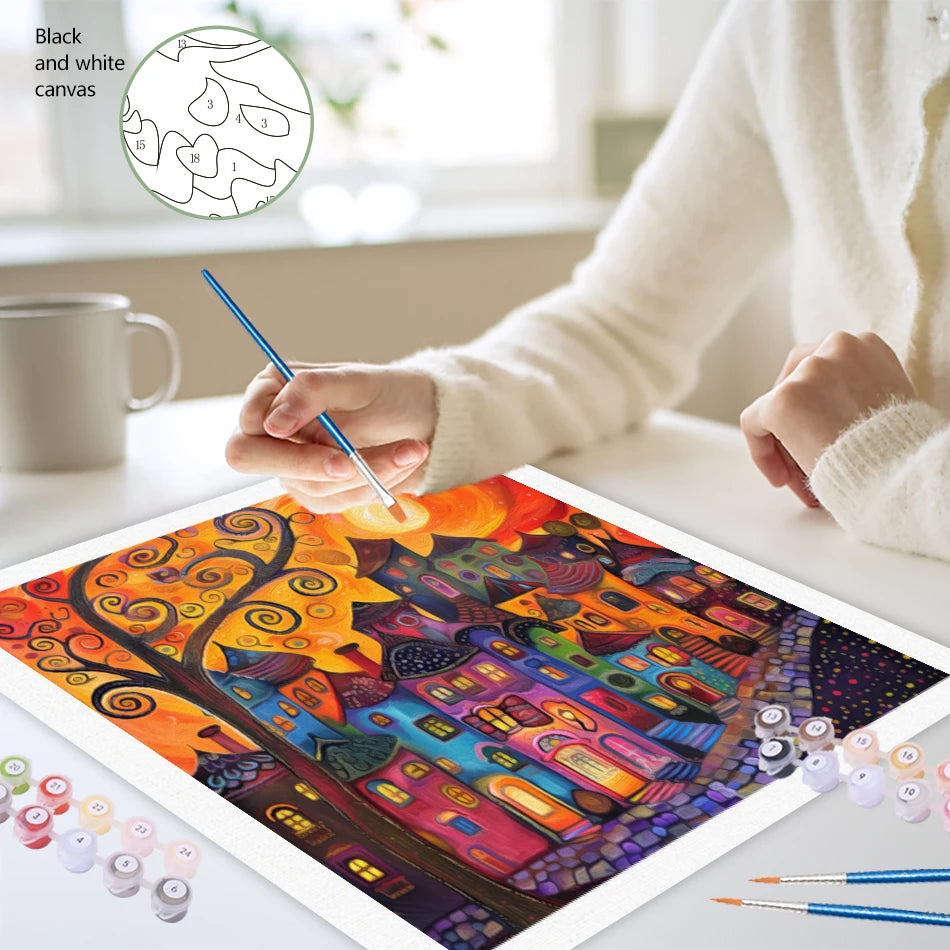 Ontdek de creativiteit van schilderen op nummer met een unieke collectie van 13 verschillende afbeeldingen. Kies uit prachtige ontwerpen met abstracte huizen, sfeervolle landschappen en karakteristieke busjes. Ideaal voor ontspanning en een geweldig eindresultaat!
