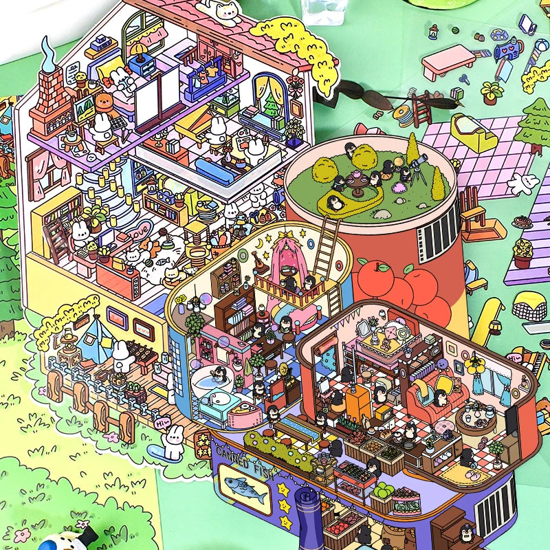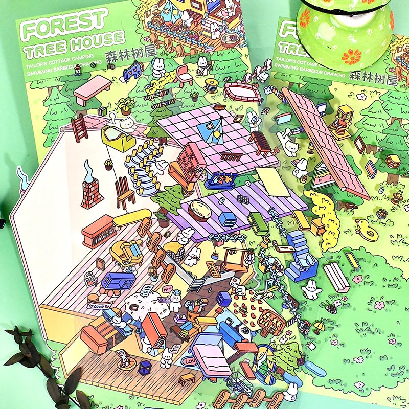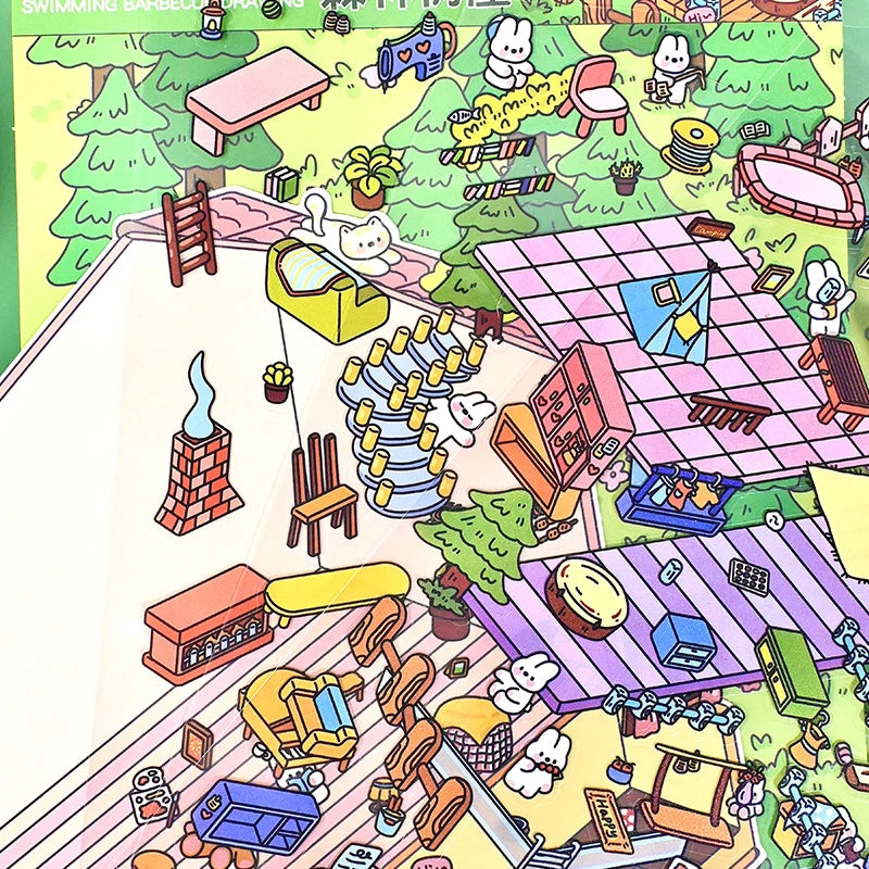 Met deze sticker homestyling set tover je elke ruimte om tot een speelse en gezellige omgeving. Het thema met een vrolijk konijn en een charmante pinguïn geeft je interieur een warme en levendige uitstraling. Dankzij het cabin design en de gedetailleerde figuren voelt het alsof je een uniek mini-interieur creëert, helemaal naar je eigen stijl en fantasie.