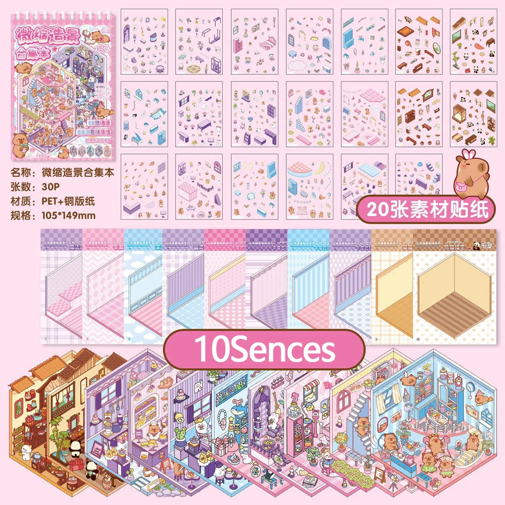 Sticker homestyling set landschap boek met cabin en interieur stickers