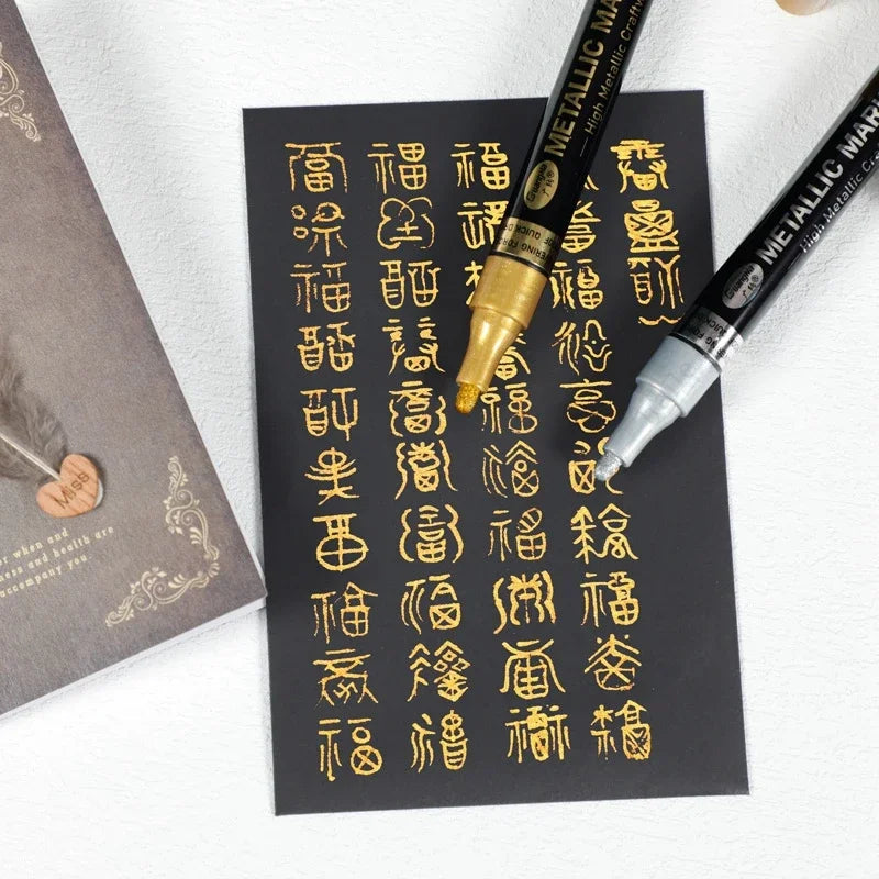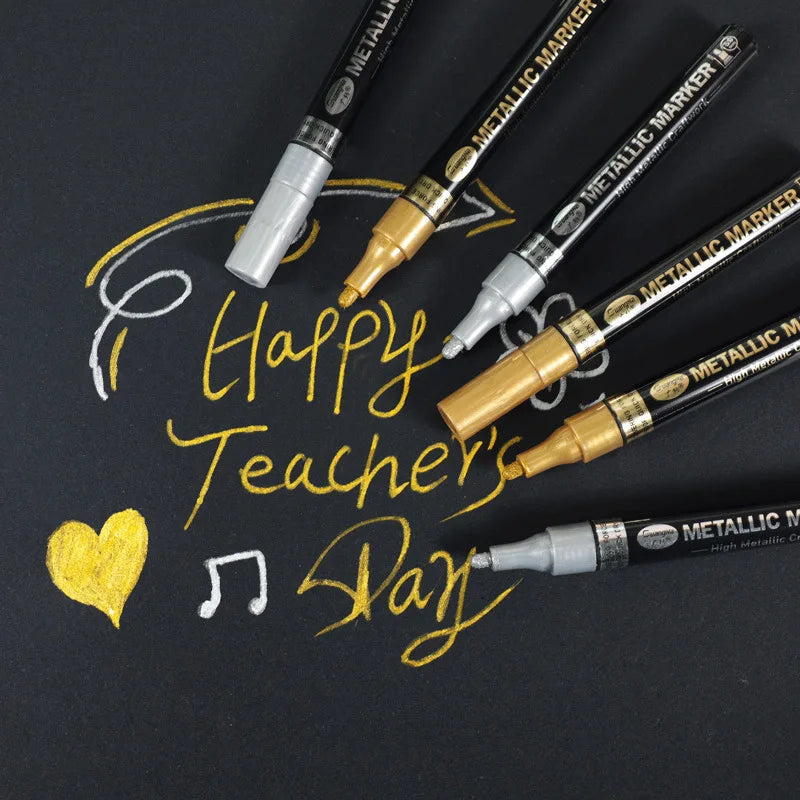 Voeg een sprankelend accent toe aan je kunstwerken met deze set van twee permanente metallic stiften in goud en zilver. Met een puntdikte van 2 tot 3 mm zijn ze perfect voor gedetailleerd tekenen, schilderen en versieren van papier, karton, glas, steen, hout en meer. De verf op waterbasis droogt snel, dekt goed en geeft een prachtige glanzende afwerking. Ideaal voor hobbyprojecten, kaarten maken en creatieve schoolopdrachten. Een onmisbare aanvulling voor elke creatieve liefhebber!