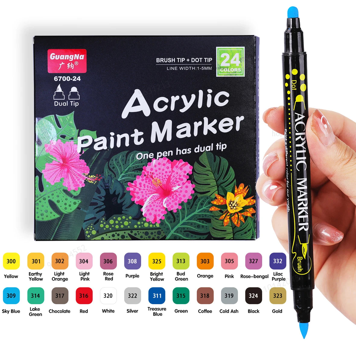 Stiften set 24 kleuren acryl met dubbele punt voor schilderen en knutselen