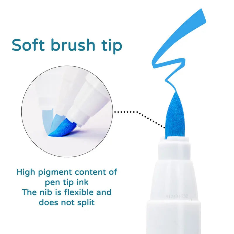 Deze stiften set met acrylverfstiften is ontworpen voor iedereen die graag nauwkeurig en expressief werkt. De inkt op acrylbasis droogt snel en zorgt voor een dekkend, egaal resultaat zonder strepen. Dankzij de penseelpunt wissel je moeiteloos tussen fijne lijnen en bredere penseelstreken, wat zorgt voor maximale controle tijdens het tekenen, schilderen en decoreren.
