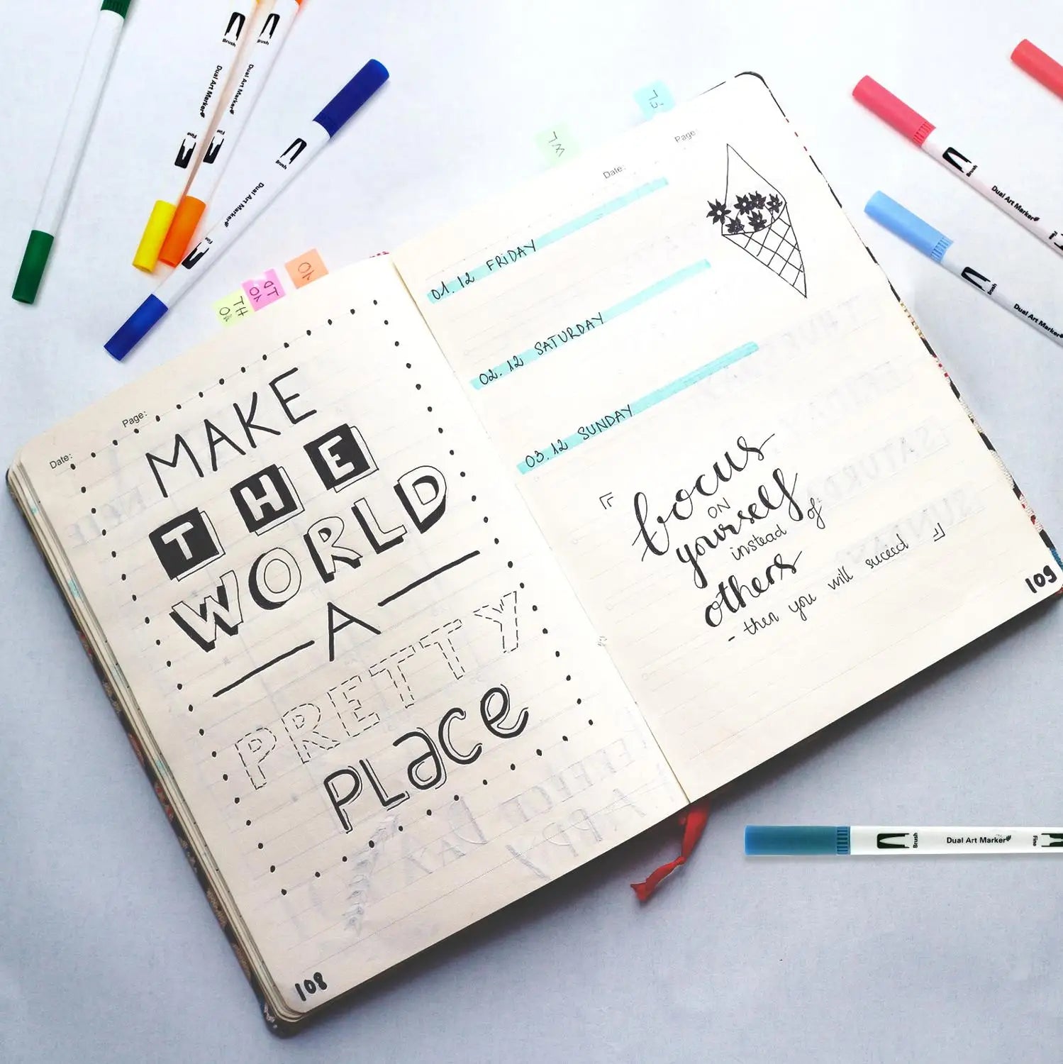 Dankzij de combinatie van een zachte brush tip en een nauwkeurige finelinerpunt switch je moeiteloos tussen brede kleurvlakken en fijne details. De inkt droogt snel, wat vlekken voorkomt en de markers prettig maakt voor lange sessies. Door de ergonomische vorm liggen de stiften comfortabel in de hand, waardoor je ontspannen en nauwkeurig kunt werken.