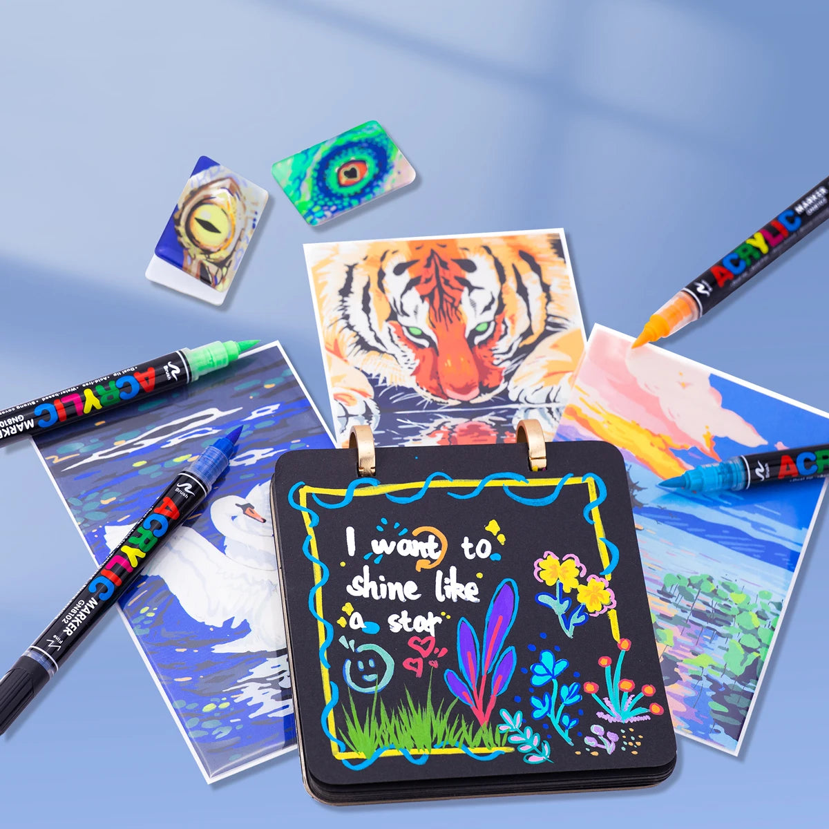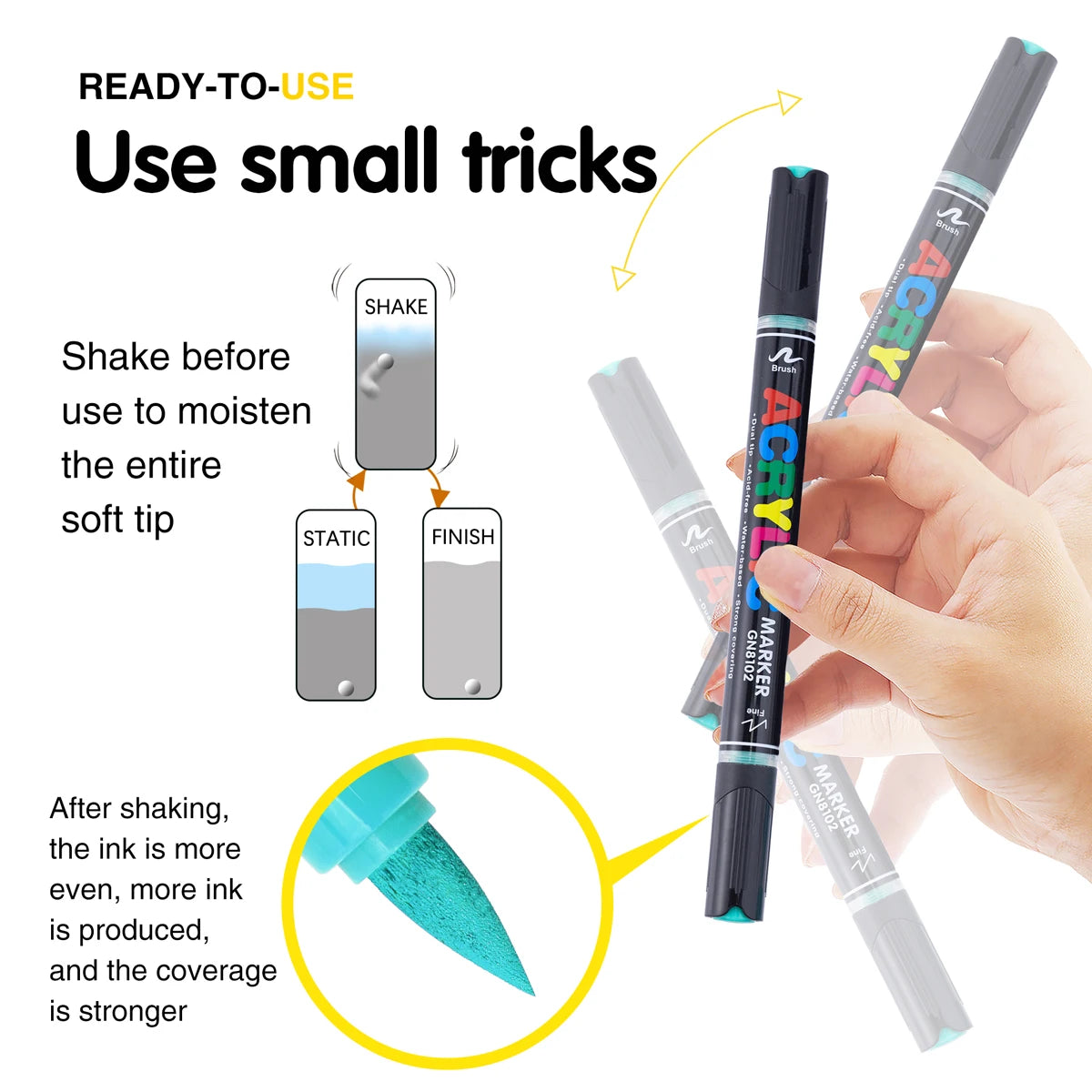 Ontdek de ultieme creatieve vrijheid met deze uitgebreide stiften set, beschikbaar in varianten van 36 tot maar liefst 168 levendige kleuren. Elke marker is voorzien van een dubbele punt: een zachte penseelpunt voor vloeiende penseelstreken en een ronde fijne punt voor gedetailleerd werk. Ideaal voor illustraties, handlettering, manga, hobbyprojecten en kleurrijke kunstwerken. De vloeibare acrylinkt biedt een dekkende, soepele kleurtoepassing en droogt snel voor een strak resultaat. Geschikt voor zowel beginnende als ervaren kunstenaars die kwaliteit en veelzijdigheid zoeken in hun creatieve tools.