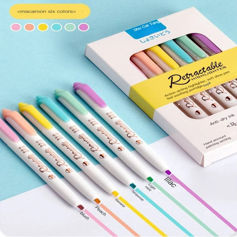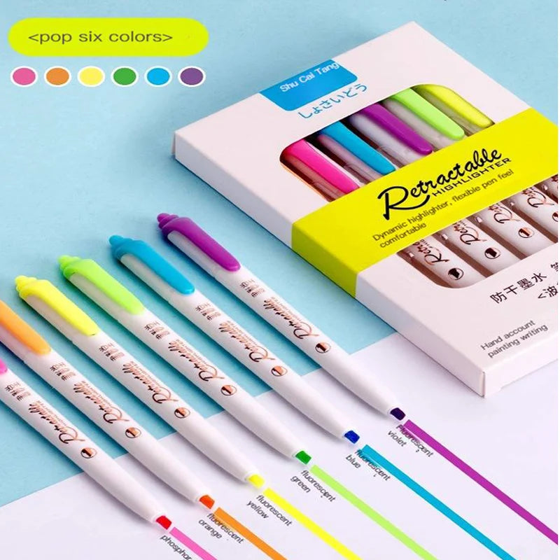 Stiften set met 6 kleuren – Multicolor highlighters met drukknop